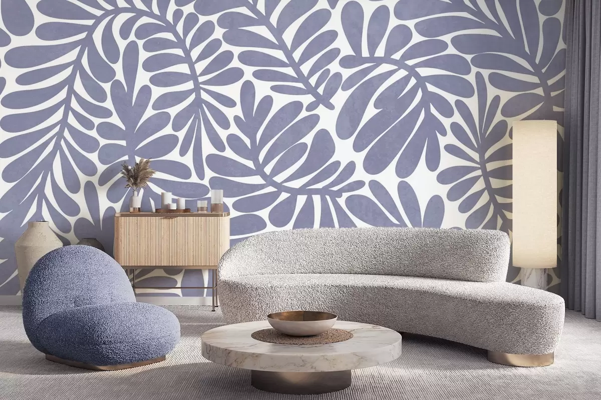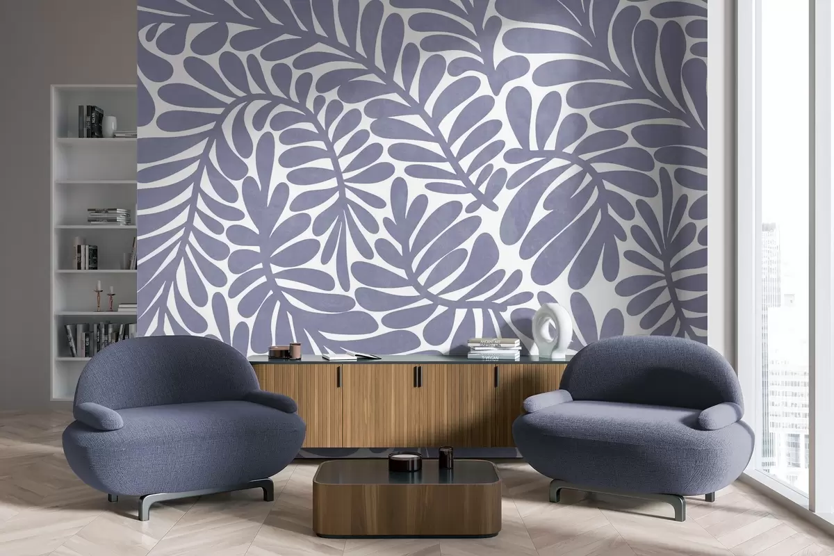 Fototapetak Stilizált világoskék levelek világos háttér előtt, texturált grafika Nr. w09775v1