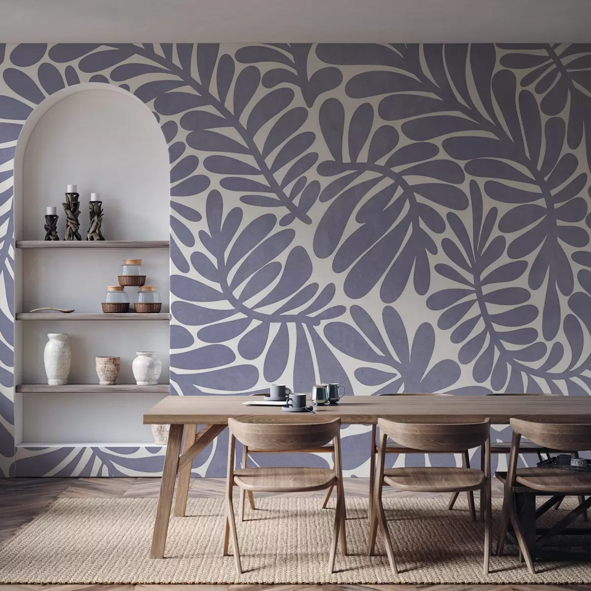 Fototapetak Stilizált világoskék levelek világos háttér előtt, texturált grafika Nr. w09775v1