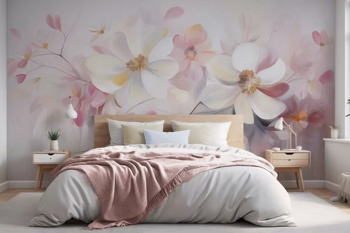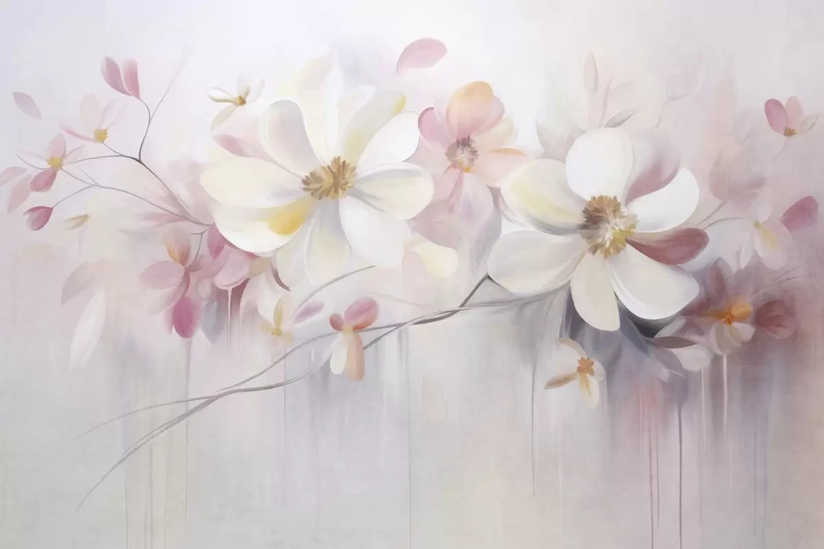 Fototapetak Fehér és rózsaszín virágok finom szirmokkal, texturált kompozíció, absztrakt, lágy háttér Nr. w09811