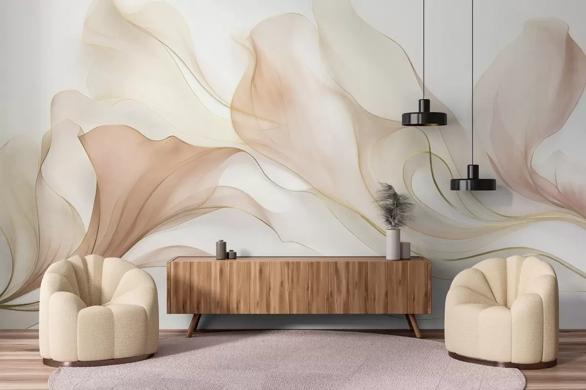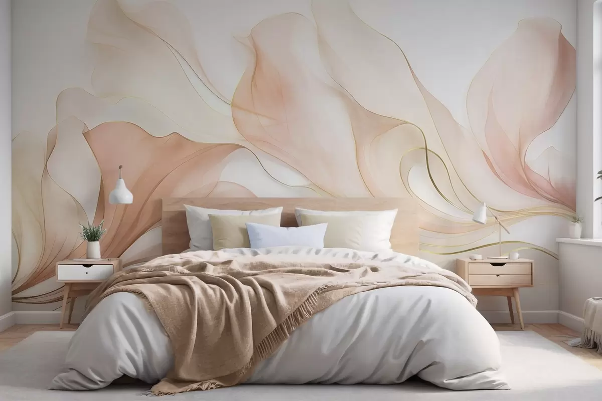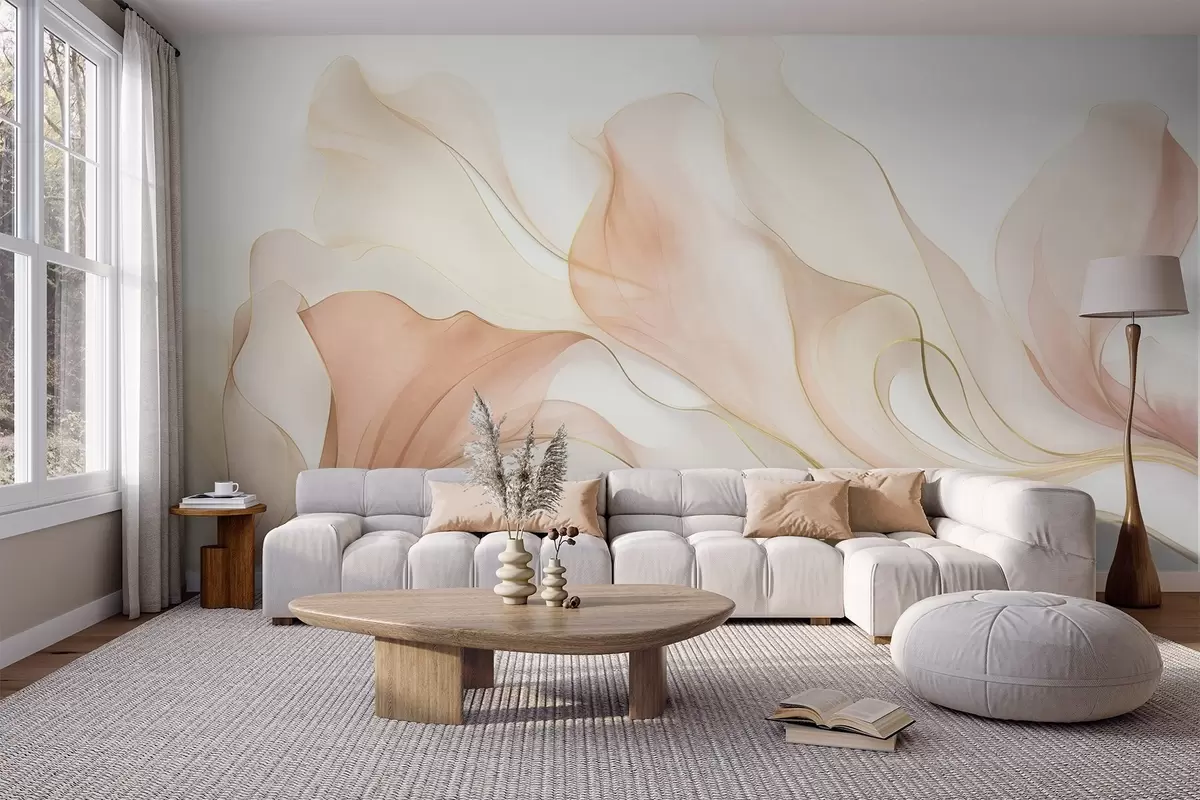 Fototapetak Absztrakt, áramló textúra barack- és krémárnyalatokban, finom vonalakkal Nr. w09815