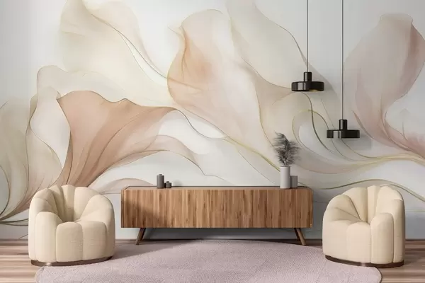 Fototapetak Absztrakt, áramló textúra barack- és krémárnyalatokban, finom vonalakkal Nr. w09815