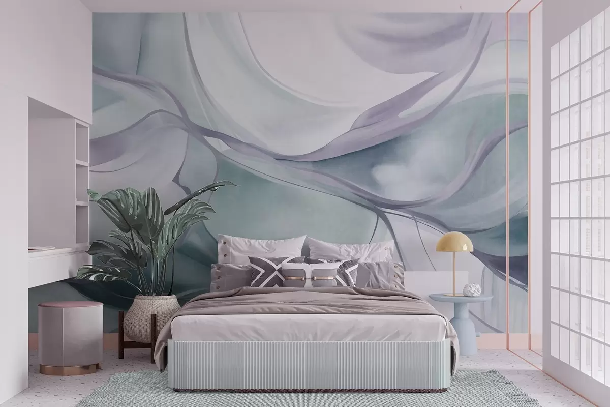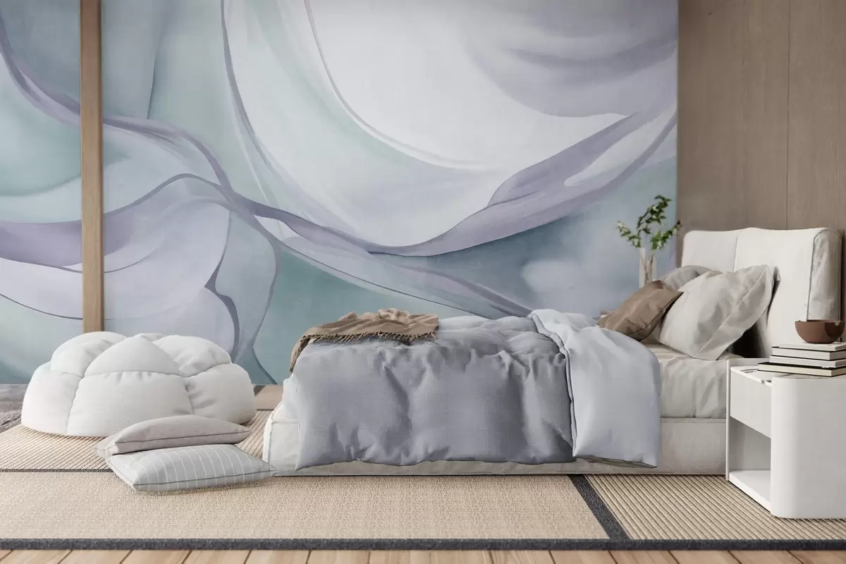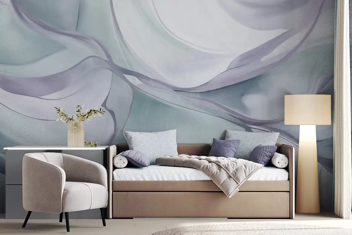 Fototapetak Absztrakt, texturált, áramló formák kék és szürke árnyalatokban, finom vonalakkal Nr. w09818v1