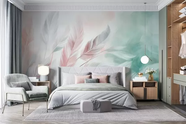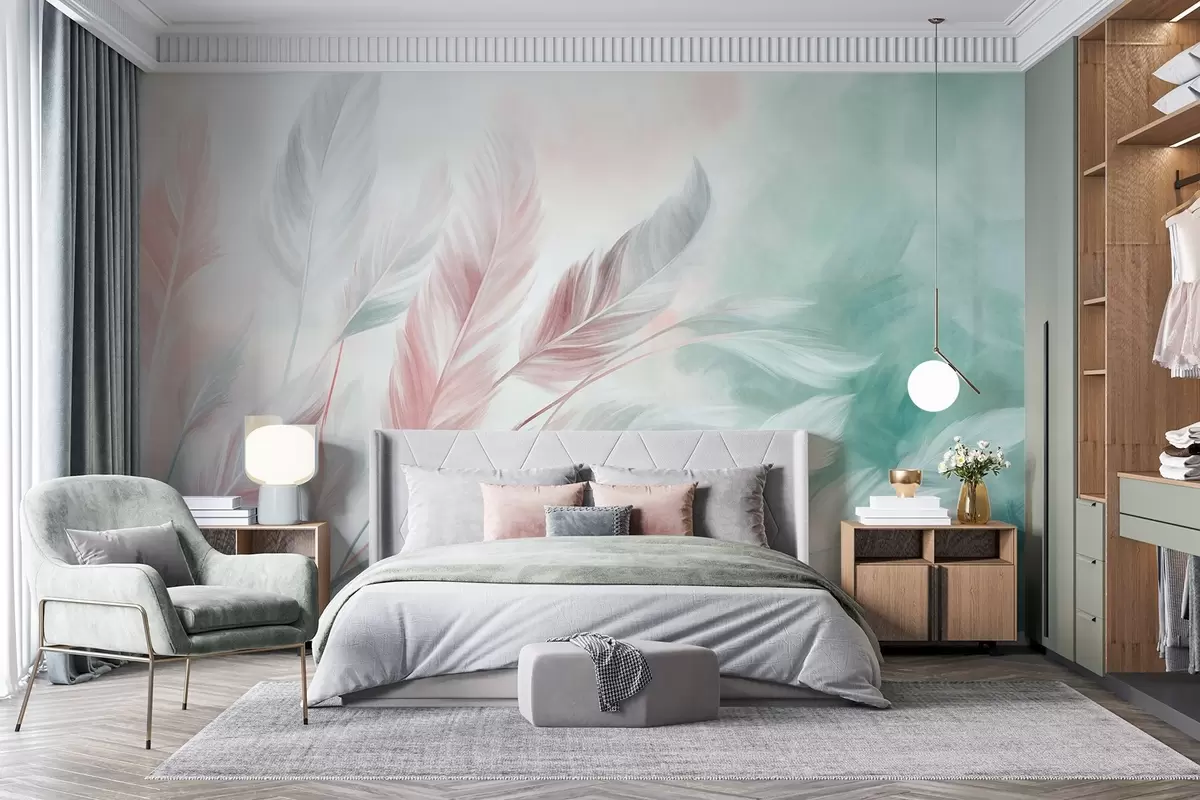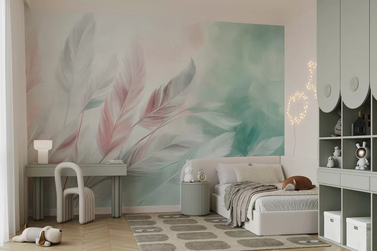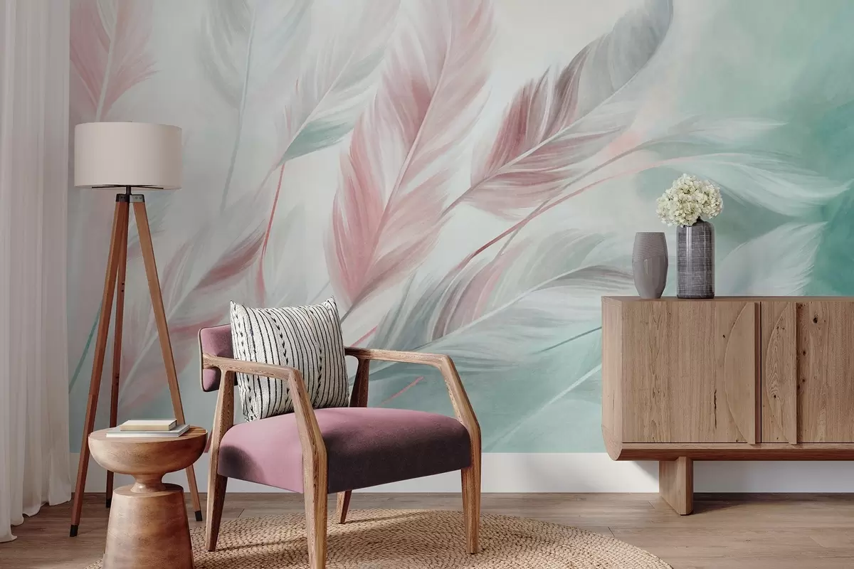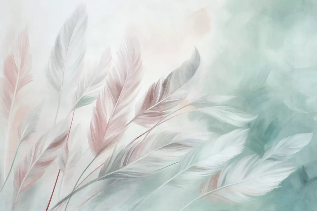 Fototapetak Texturált pasztell tollak, puha, szálas szegélyekkel, akvarell stílusú háttér előtt Nr. w09833v1