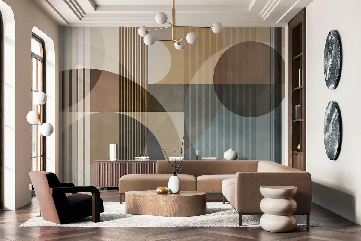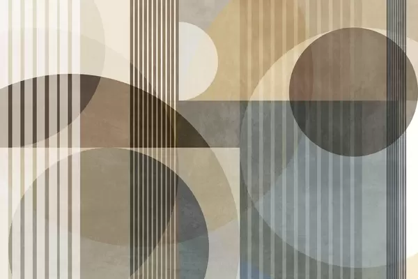 Fototapetak Absztrakt geometriai alakzatok körökkel és vonalakkal, visszafogott földszínek, texturált, réteges kompozíció Nr. w09834