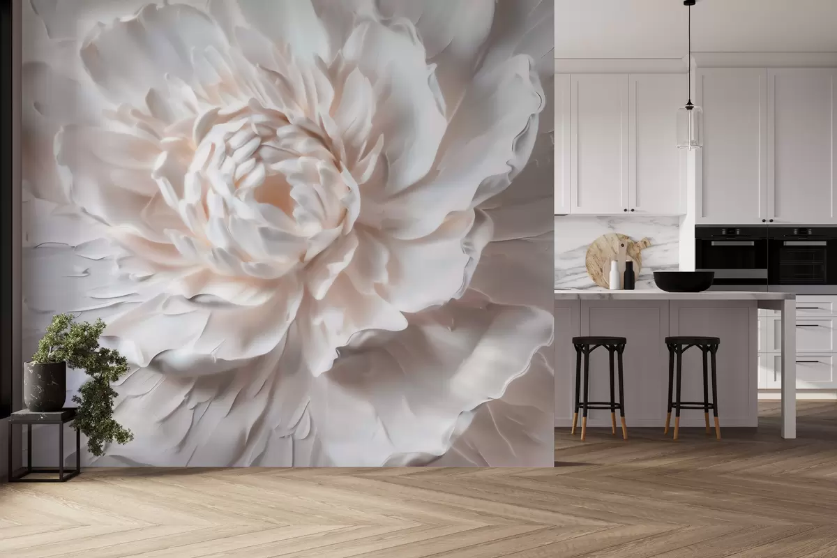 Fototapetak Finom domborművirág, sima szirmokkal, világos színekben Nr. w09861