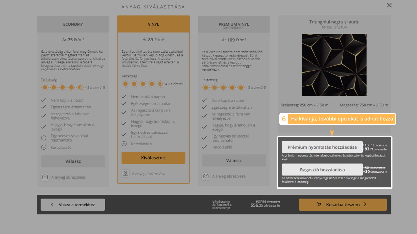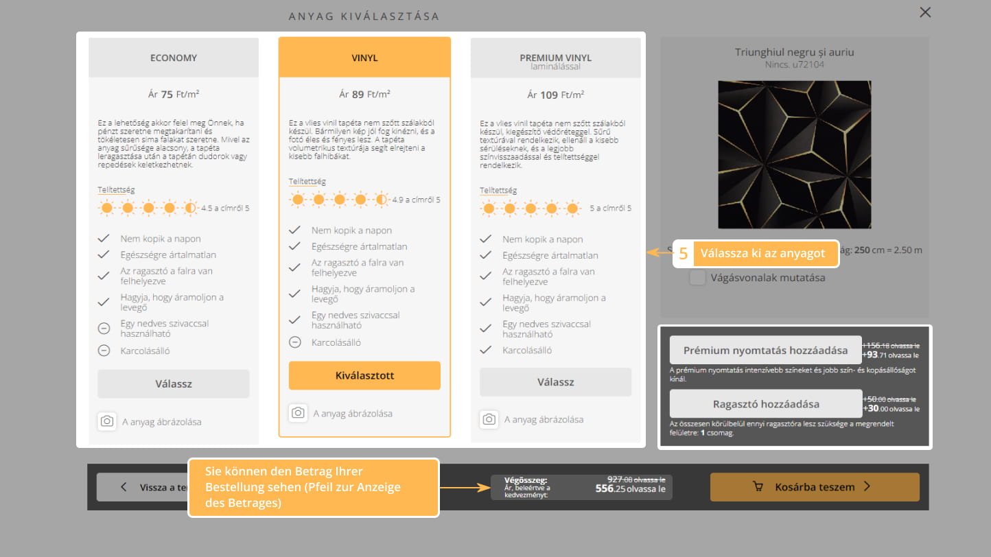 5. Válassza ki az anyagot. Ha kívánja, további opciókat is adhat hozzá