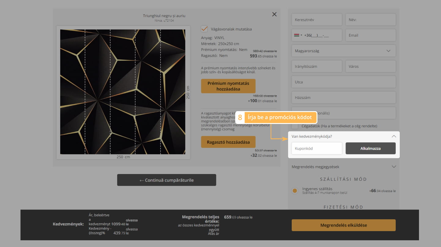 Láthatja a rendelés összegét (nyíl mutatja az összeget)