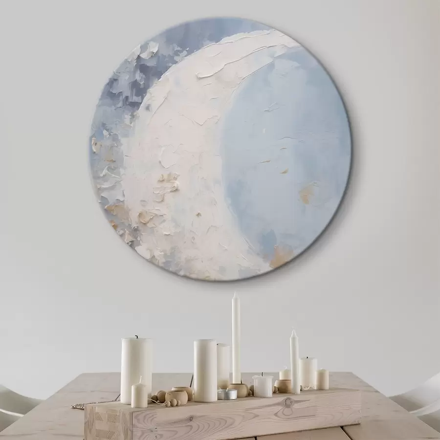 Kerek festmények Absztrakt olajfestmény fehér és kék színekben