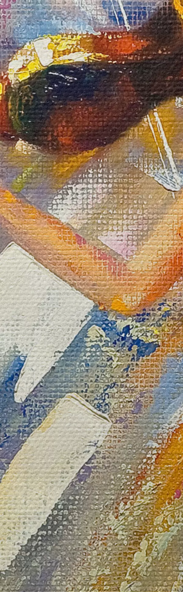 Ahhoz, hogy a vásznat a feszítőrúdra feszítsük anélkül, hogy a kép megsérülne, tükrözött képet használunk.
