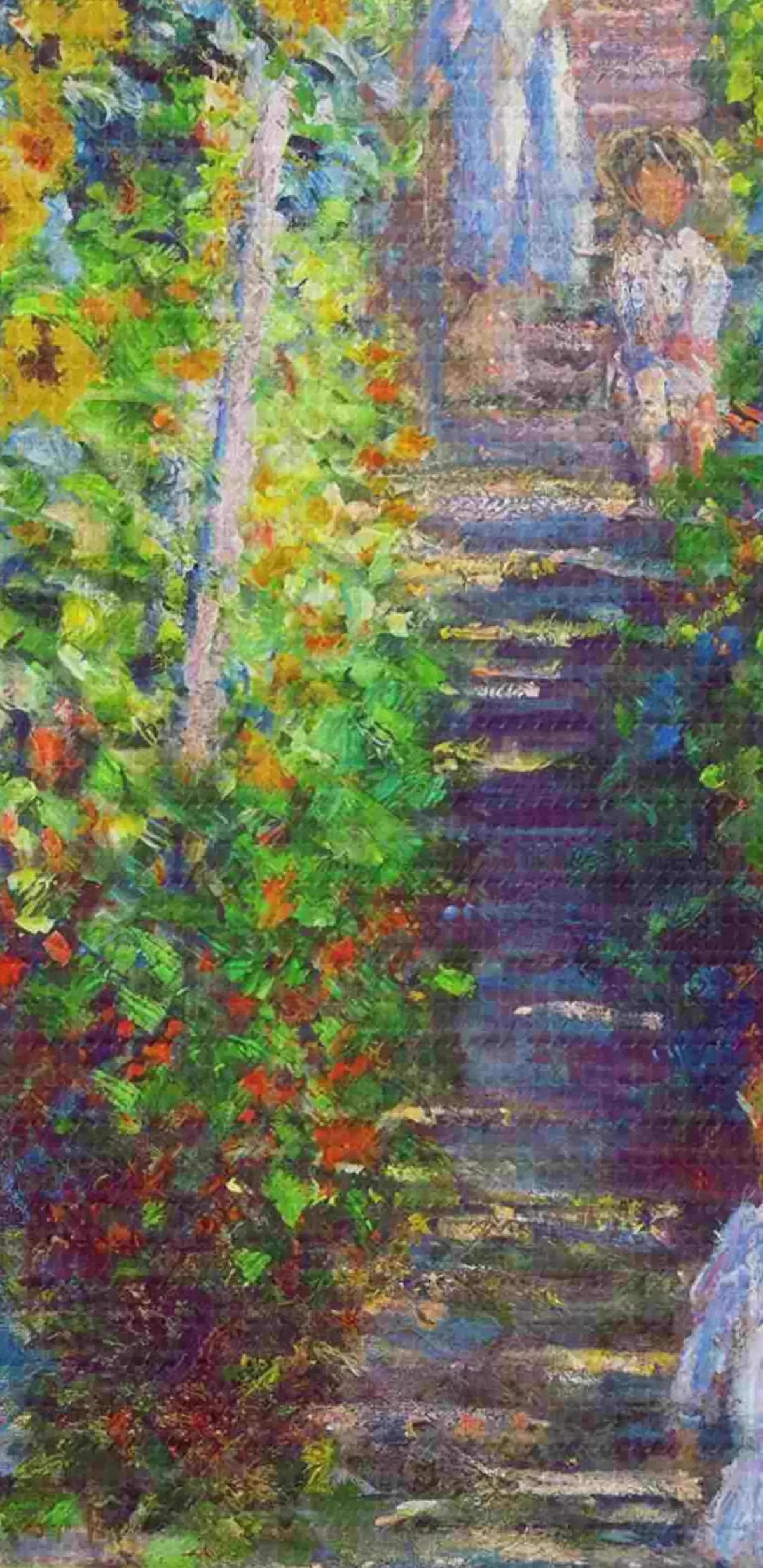 Ahhoz, hogy a vásznat a feszítőrúdra feszítsük anélkül, hogy a kép megsérülne, tükrözött képet használunk.