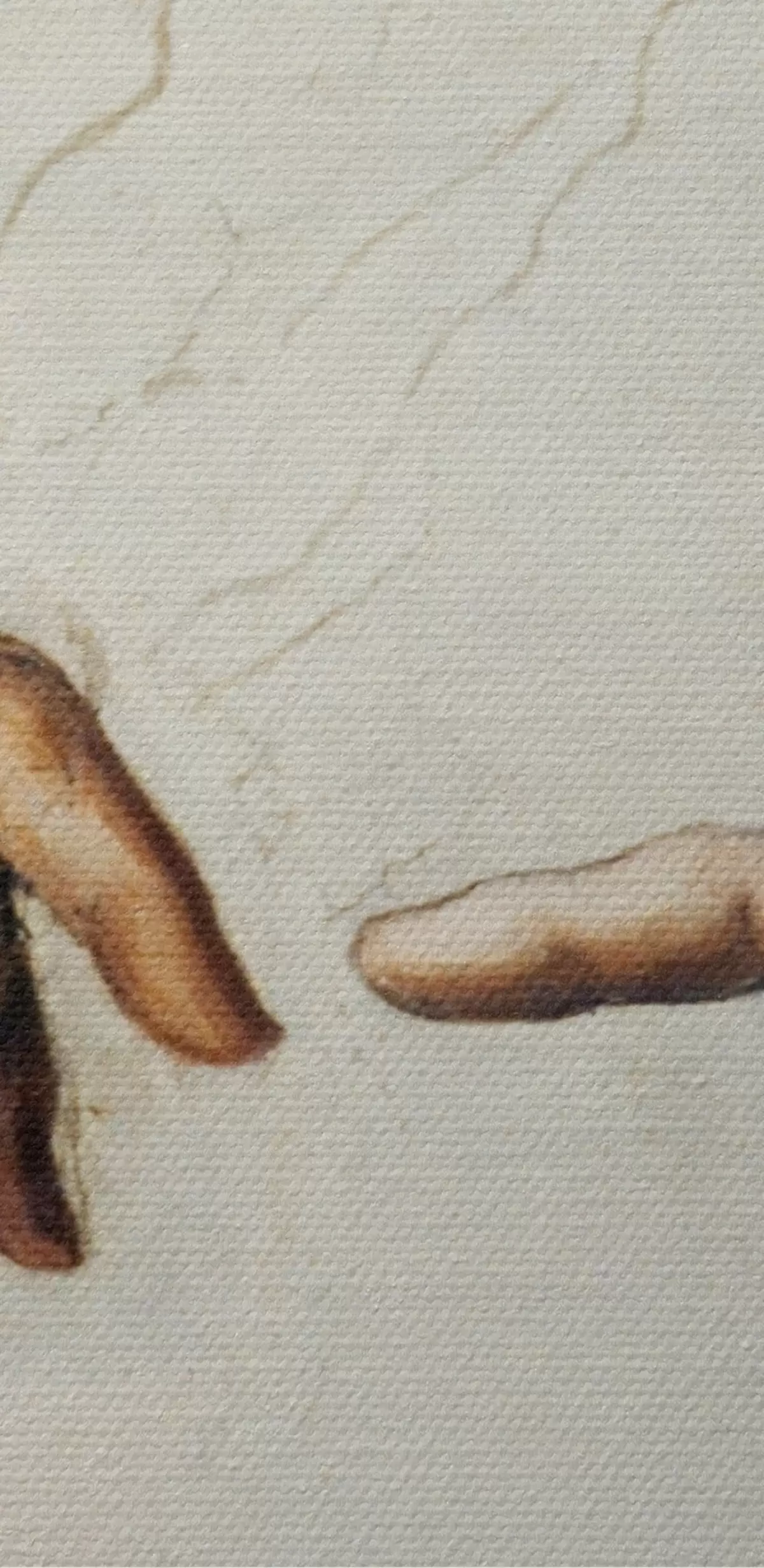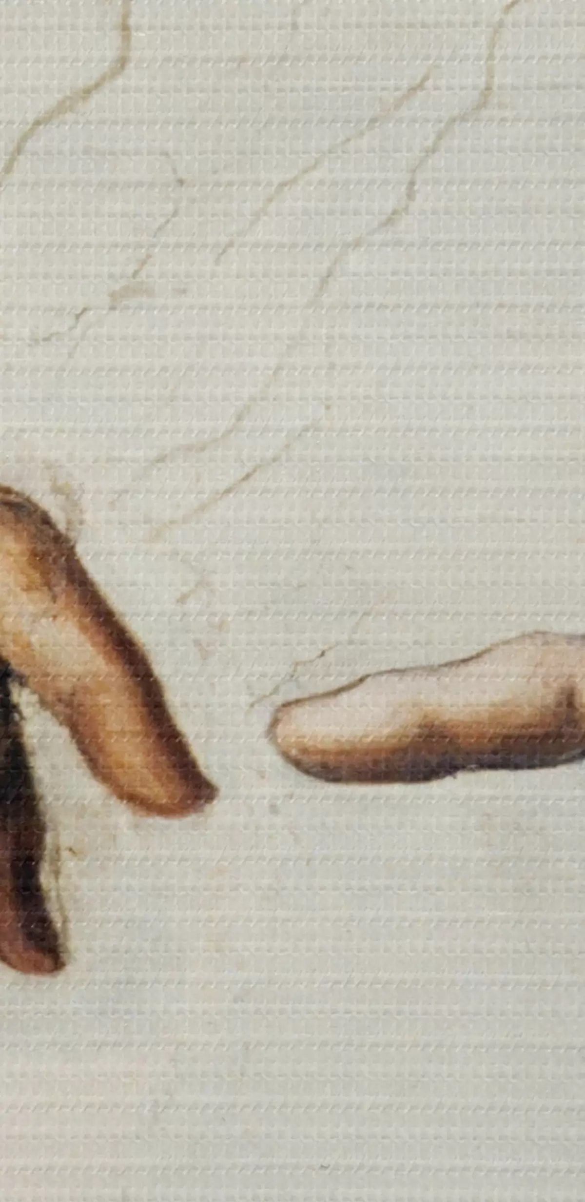 Ahhoz, hogy a vásznat a feszítőrúdra feszítsük anélkül, hogy a kép megsérülne, tükrözött képet használunk.