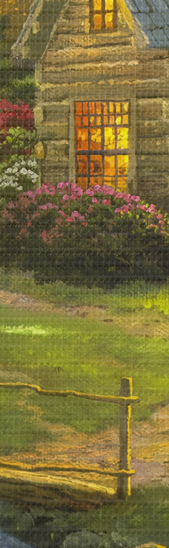 Ahhoz, hogy a vásznat a feszítőrúdra feszítsük anélkül, hogy a kép megsérülne, tükrözött képet használunk.