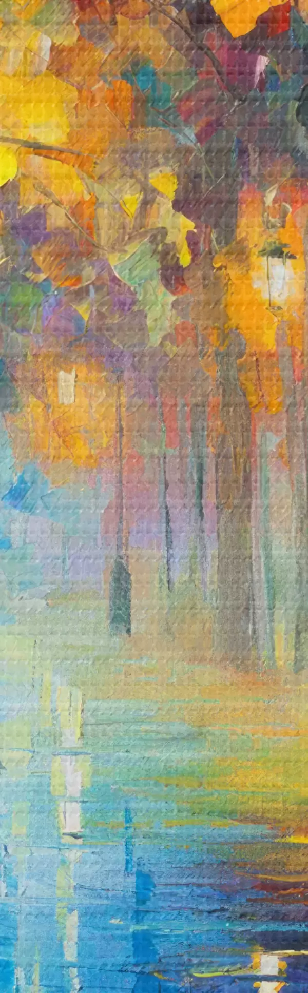 A lakkozás egy további védőréteget hoz létre a vásznon. A kép ellenállóbb lesz a kisebb sérülésekkel szemben, a lakkozott kép felfrissítéséhez pedig puha, enyhén nedves ruhával törölje át.