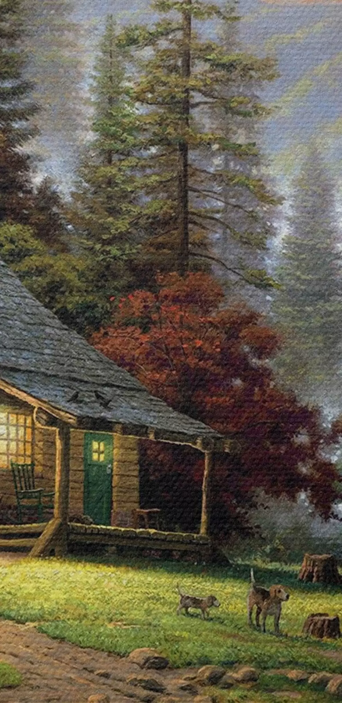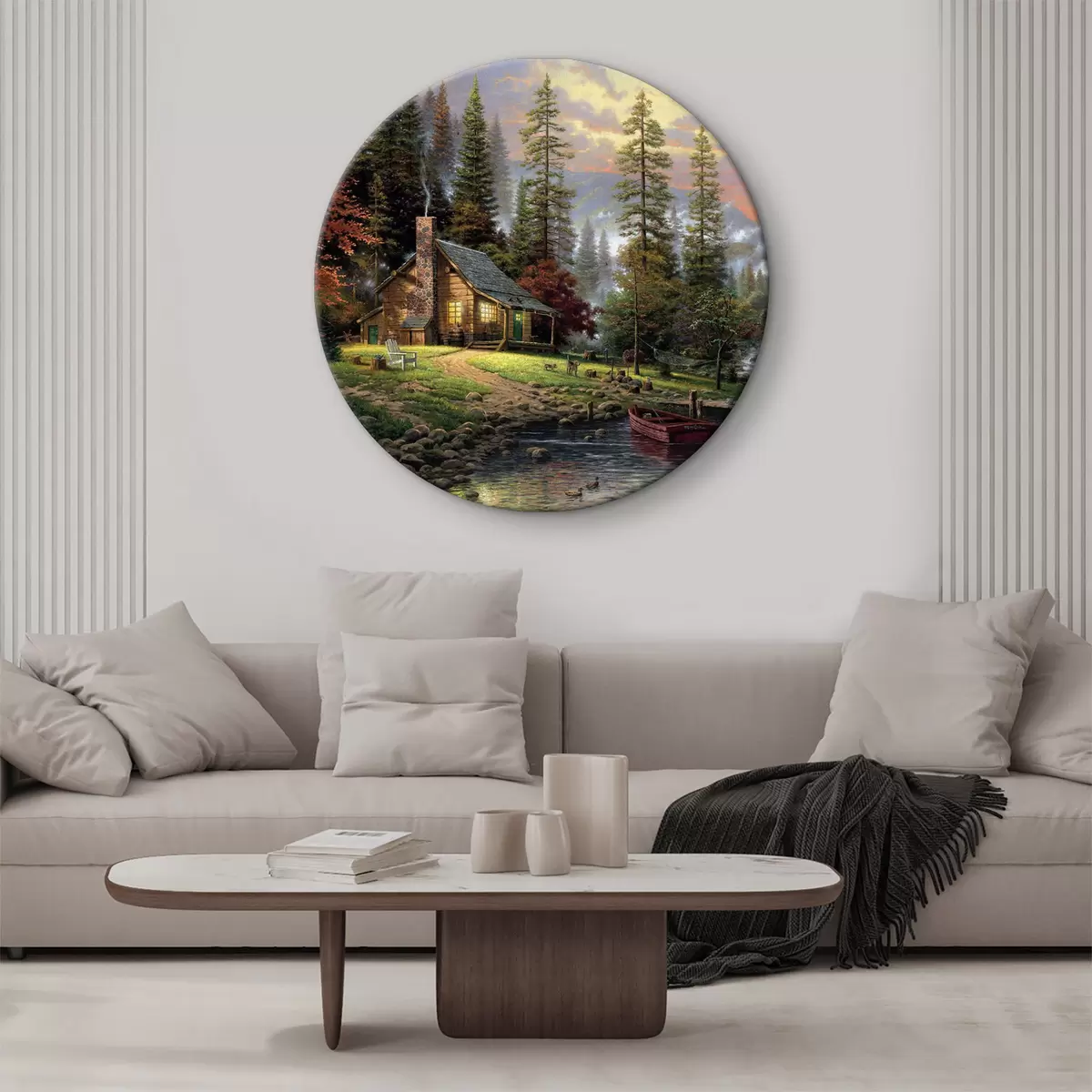 Kerek festmények Halászkunyhó az erdőben a patak mellett r15556