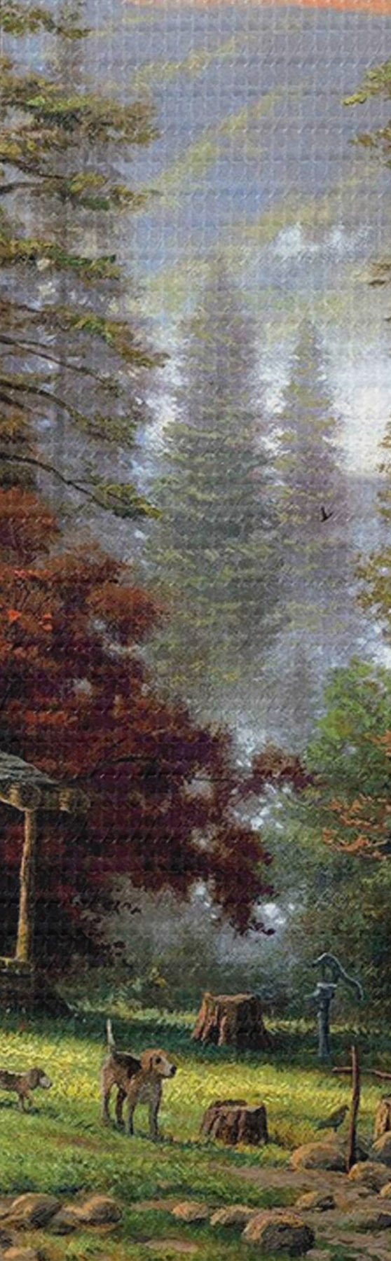 Ahhoz, hogy a vásznat a feszítőrúdra feszítsük anélkül, hogy a kép megsérülne, tükrözött képet használunk.