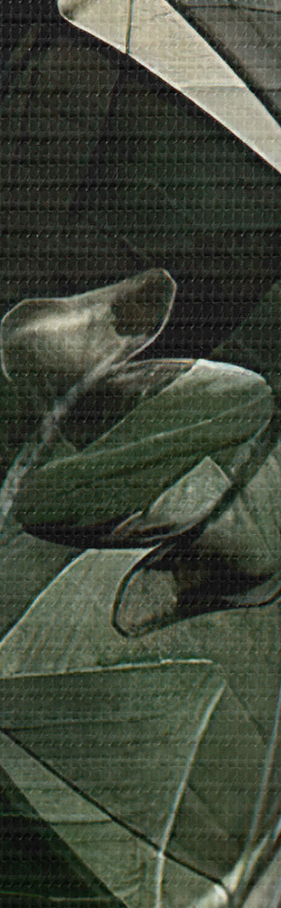 Ahhoz, hogy a vásznat a feszítőrúdra feszítsük anélkül, hogy a kép megsérülne, tükrözött képet használunk.