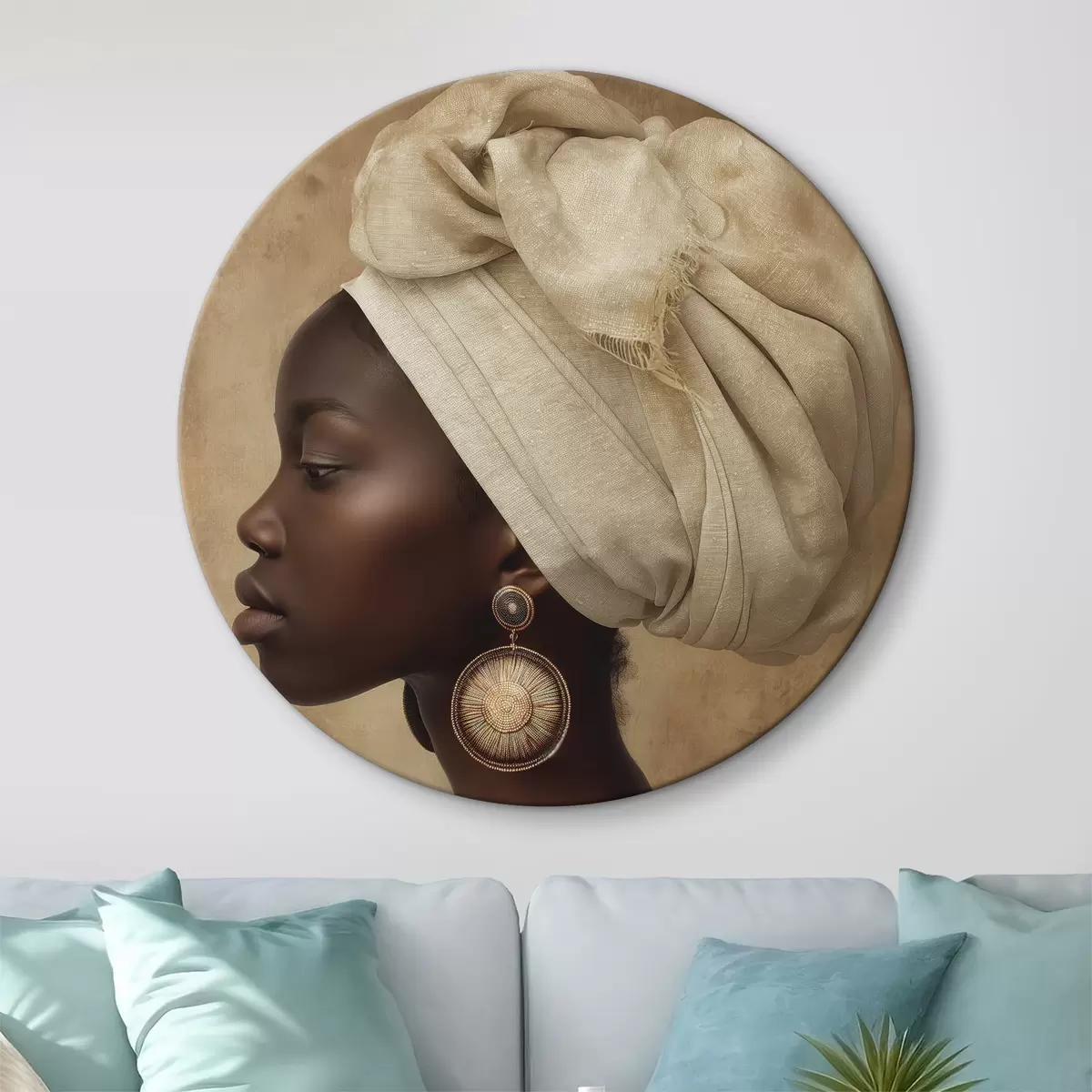 Kép bézs színű nő portréja afrikai stílusban, nagy fülbevalóval Nr r26120