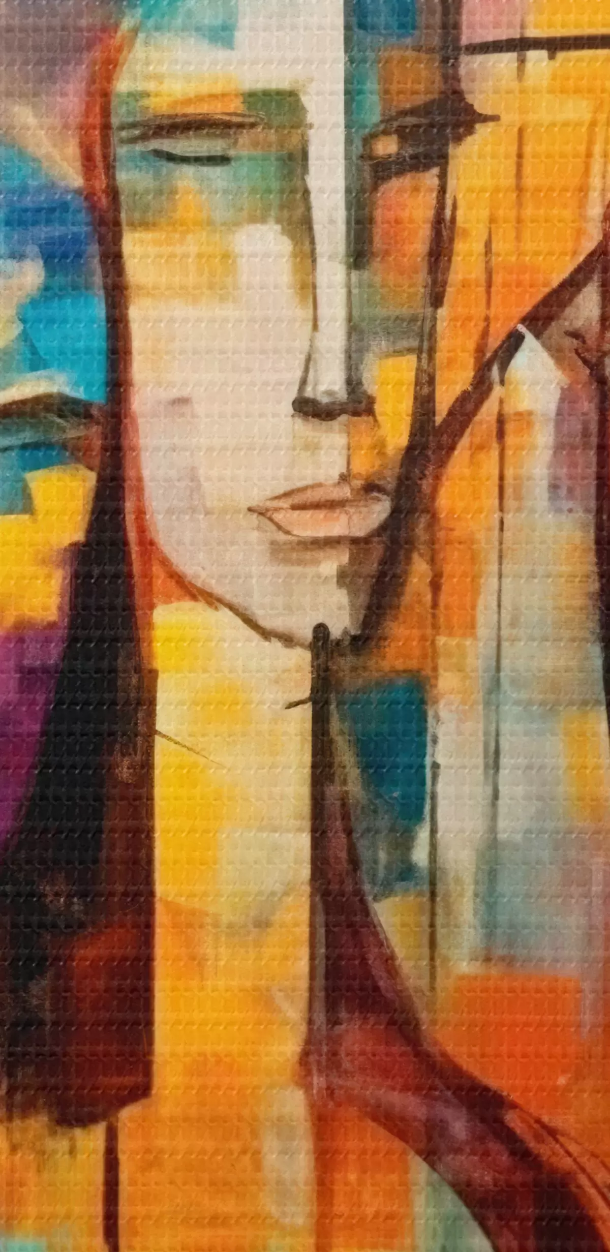 Ahhoz, hogy a vásznat a feszítőrúdra feszítsük anélkül, hogy a kép megsérülne, tükrözött képet használunk.