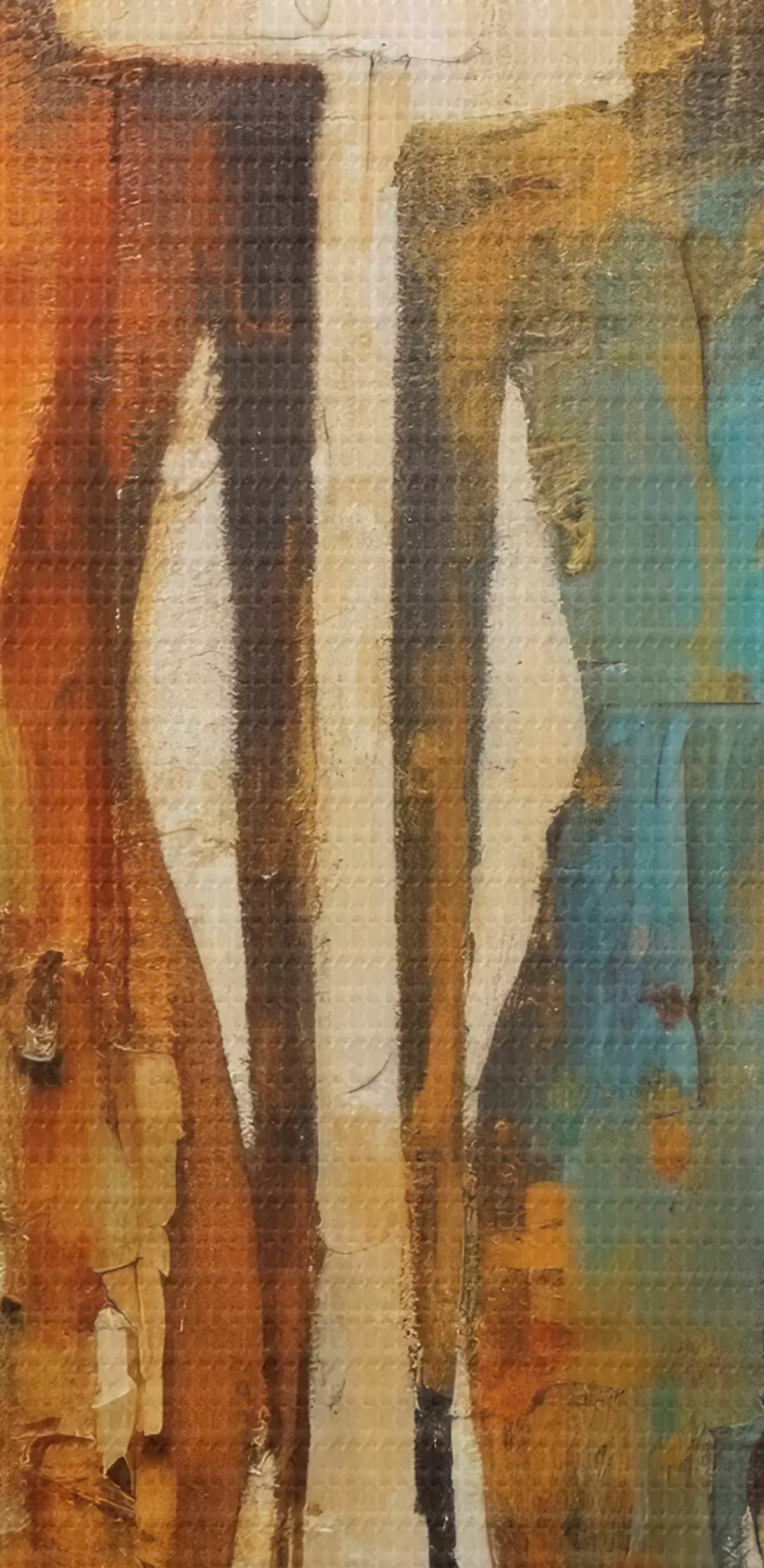 Ahhoz, hogy a vásznat a feszítőrúdra feszítsük anélkül, hogy a kép megsérülne, tükrözött képet használunk.