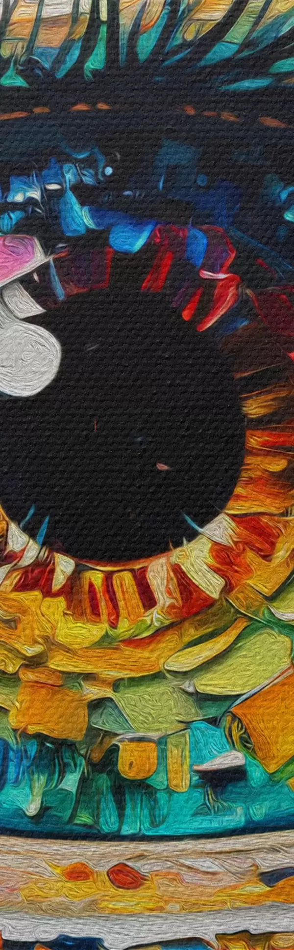 Ahhoz, hogy a vásznat a feszítőrúdra feszítsük anélkül, hogy a kép megsérülne, tükrözött képet használunk.