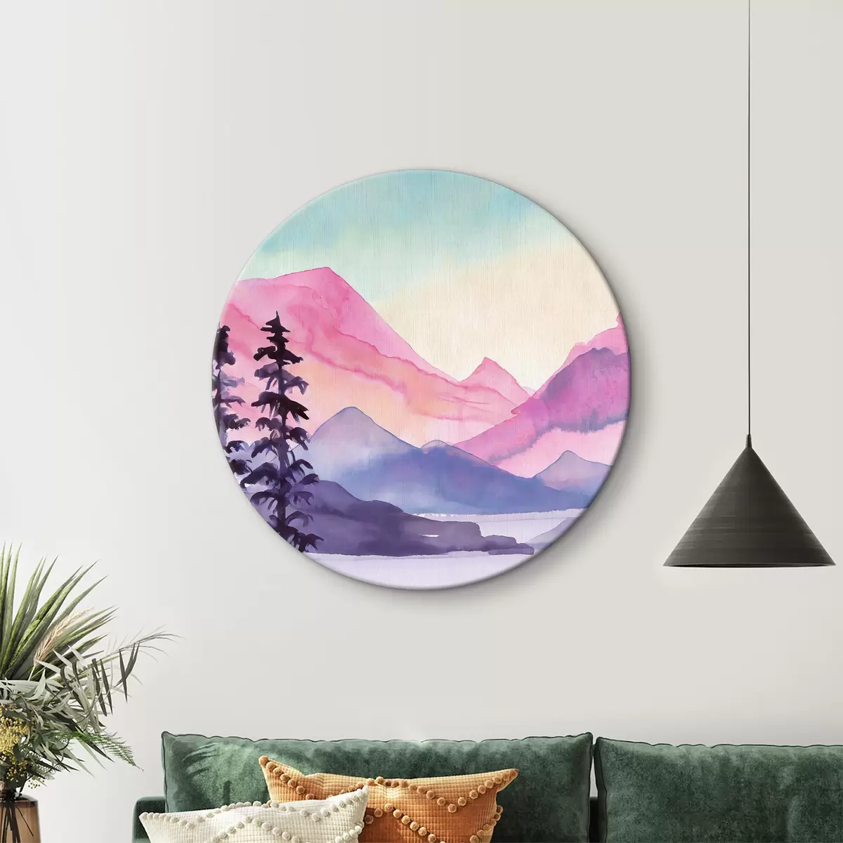 Kép Akvarell hegyi táj, napfelkelte, lágy lila, rózsaszín és kék színek Nr r36496