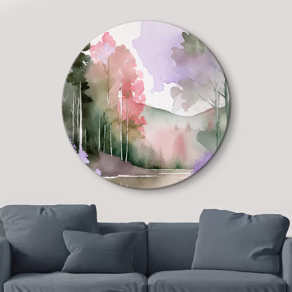 Kép Akvarell Tó és erdei táj, tavasz, finom természetes színek Nr r36501