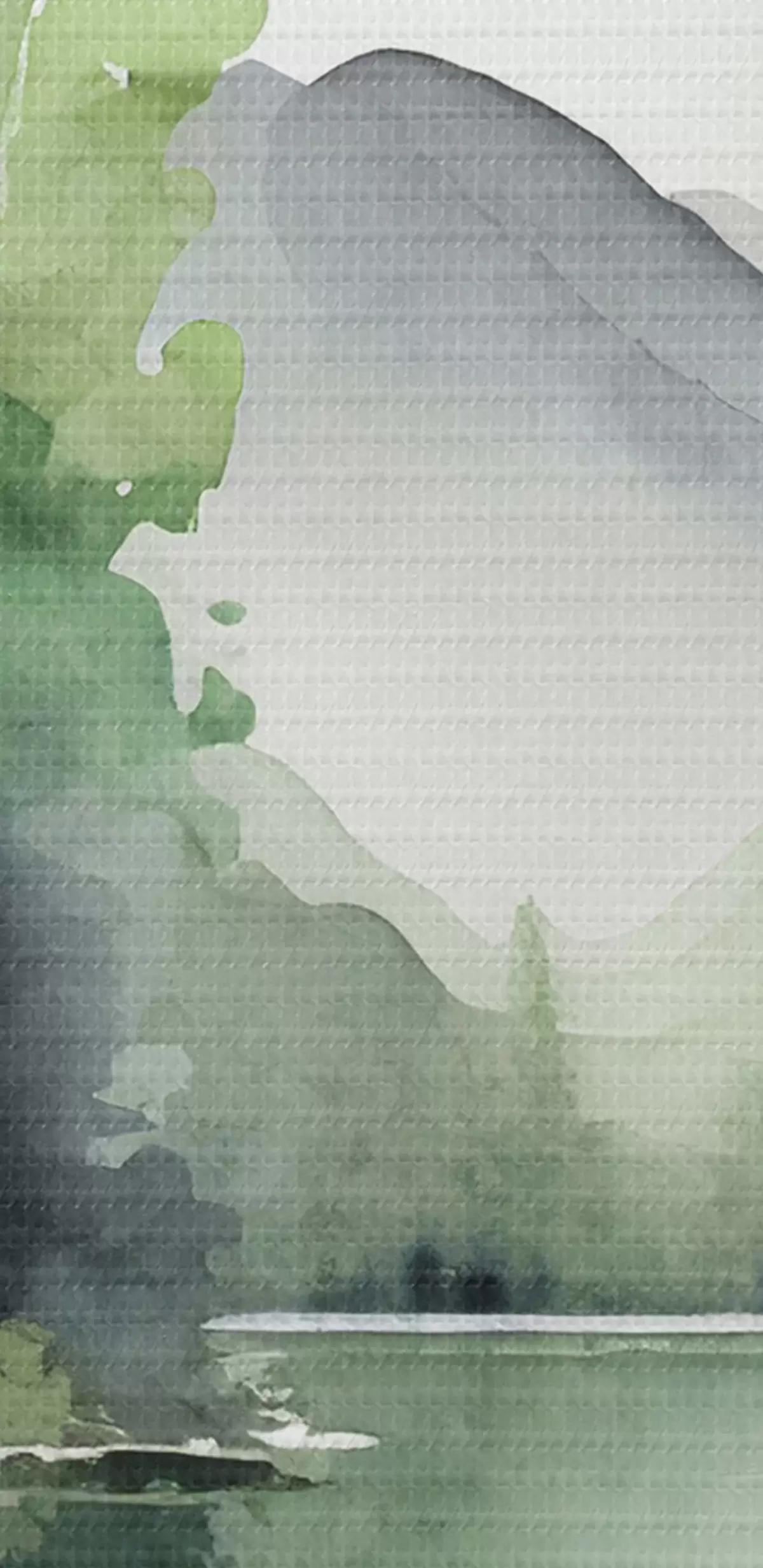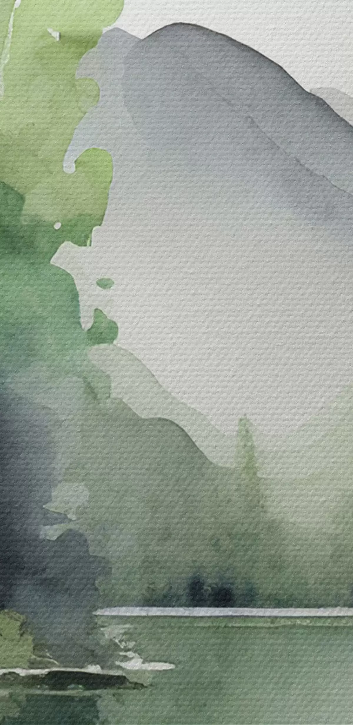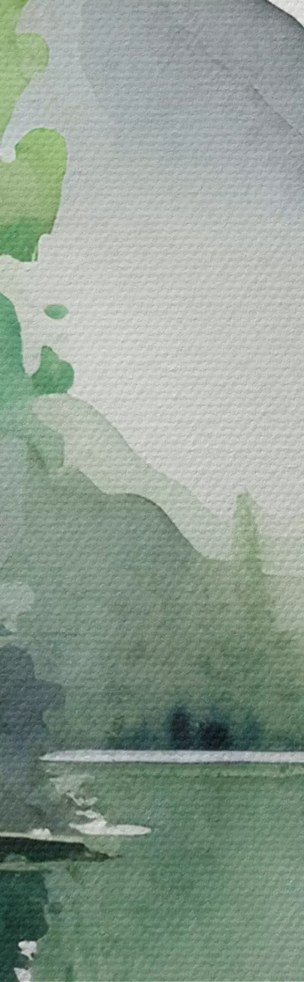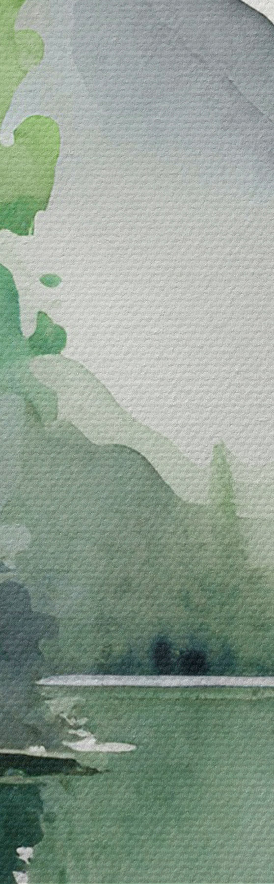 Kép Akvarell tájkép tó és erdő, tavasz, természetes zöld lágy színek Nr r36503