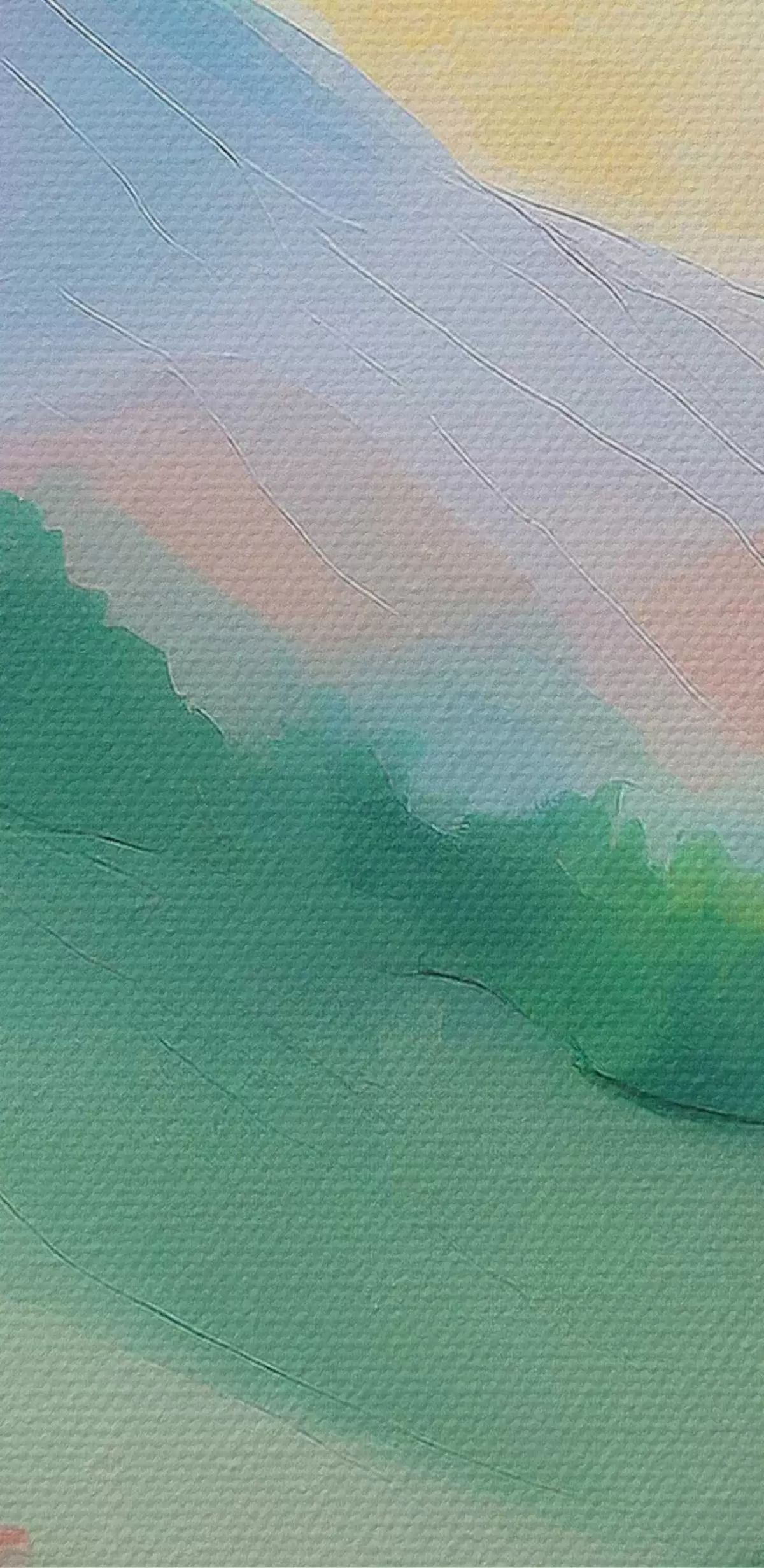 Kép Akril rajz Természet táj, naplemente színek, hegyek, fák, rét Nr r36505