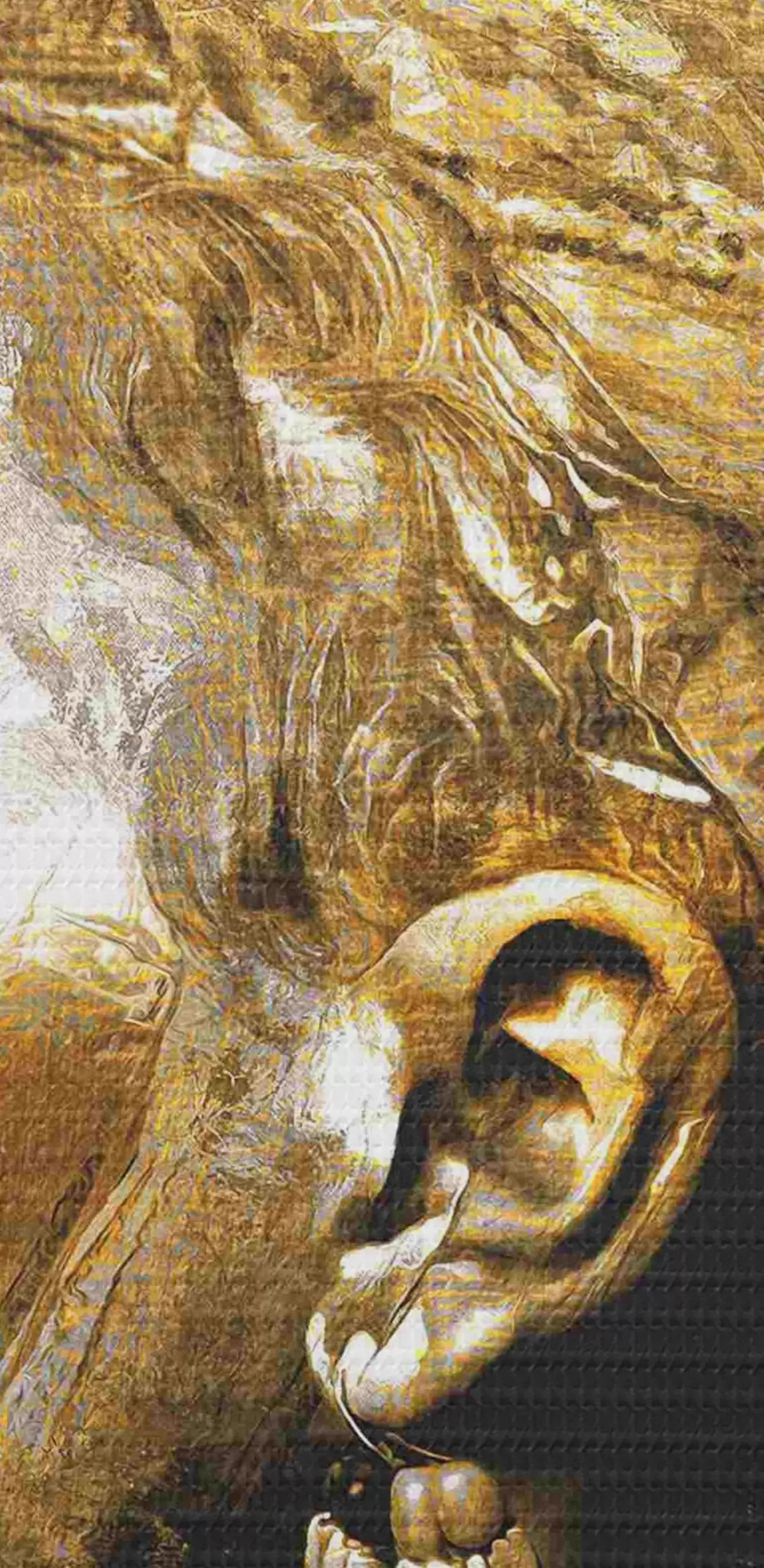 Ahhoz, hogy a vásznat a feszítőrúdra feszítsük anélkül, hogy a kép megsérülne, tükrözött képet használunk.
