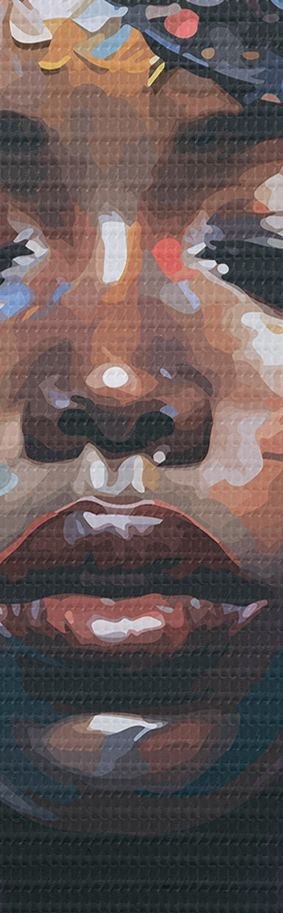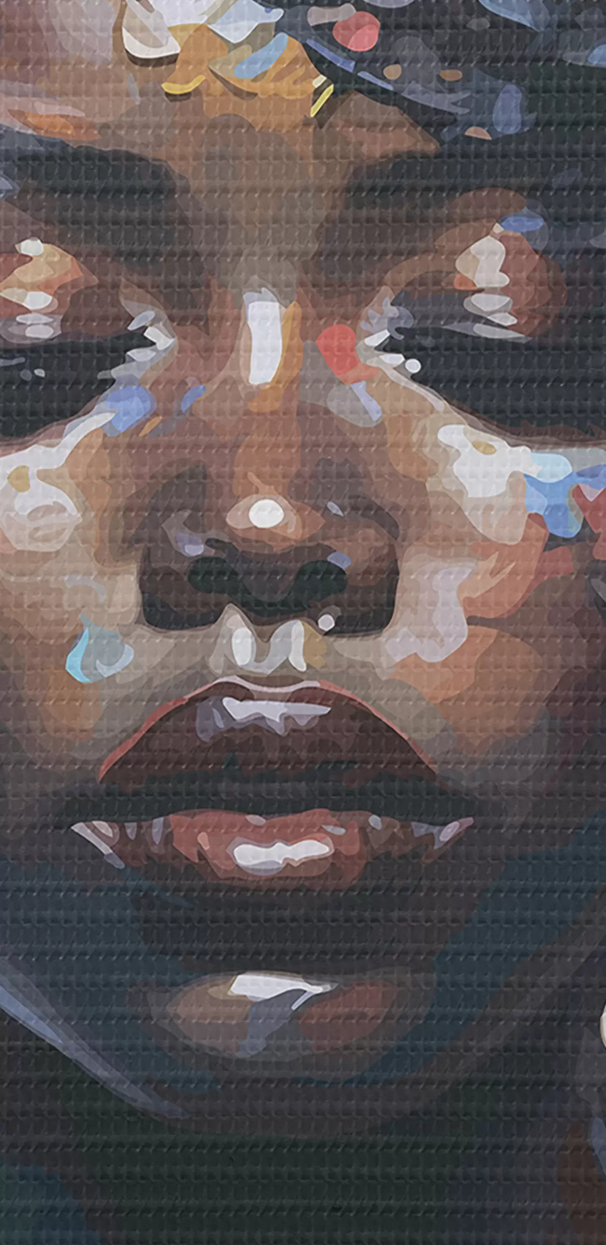 Ahhoz, hogy a vásznat a feszítőrúdra feszítsük anélkül, hogy a kép megsérülne, tükrözött képet használunk.