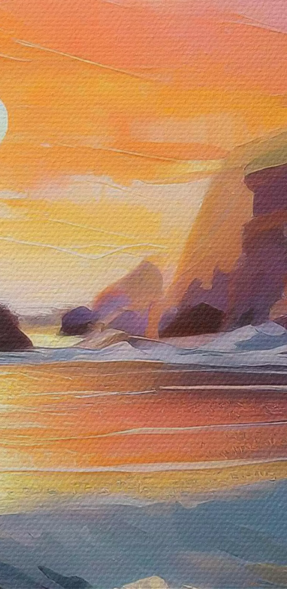 Kép Napfelkelte a tengerparton, tengeri hullámok, élénk ecsetvonások, akril Nr r36581