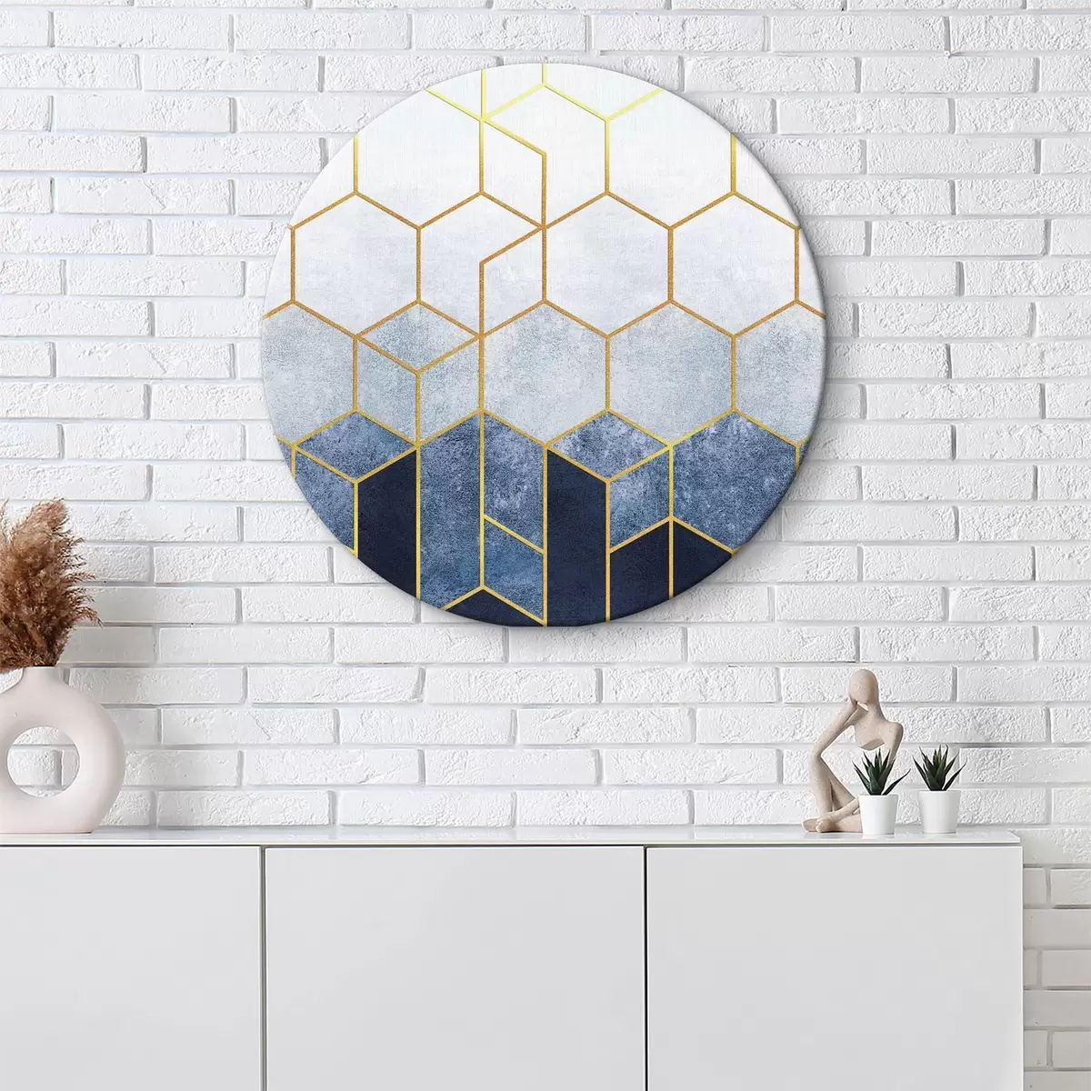 Kerek festmények Elegáns geometrikus minta kék és fehér színben r36601