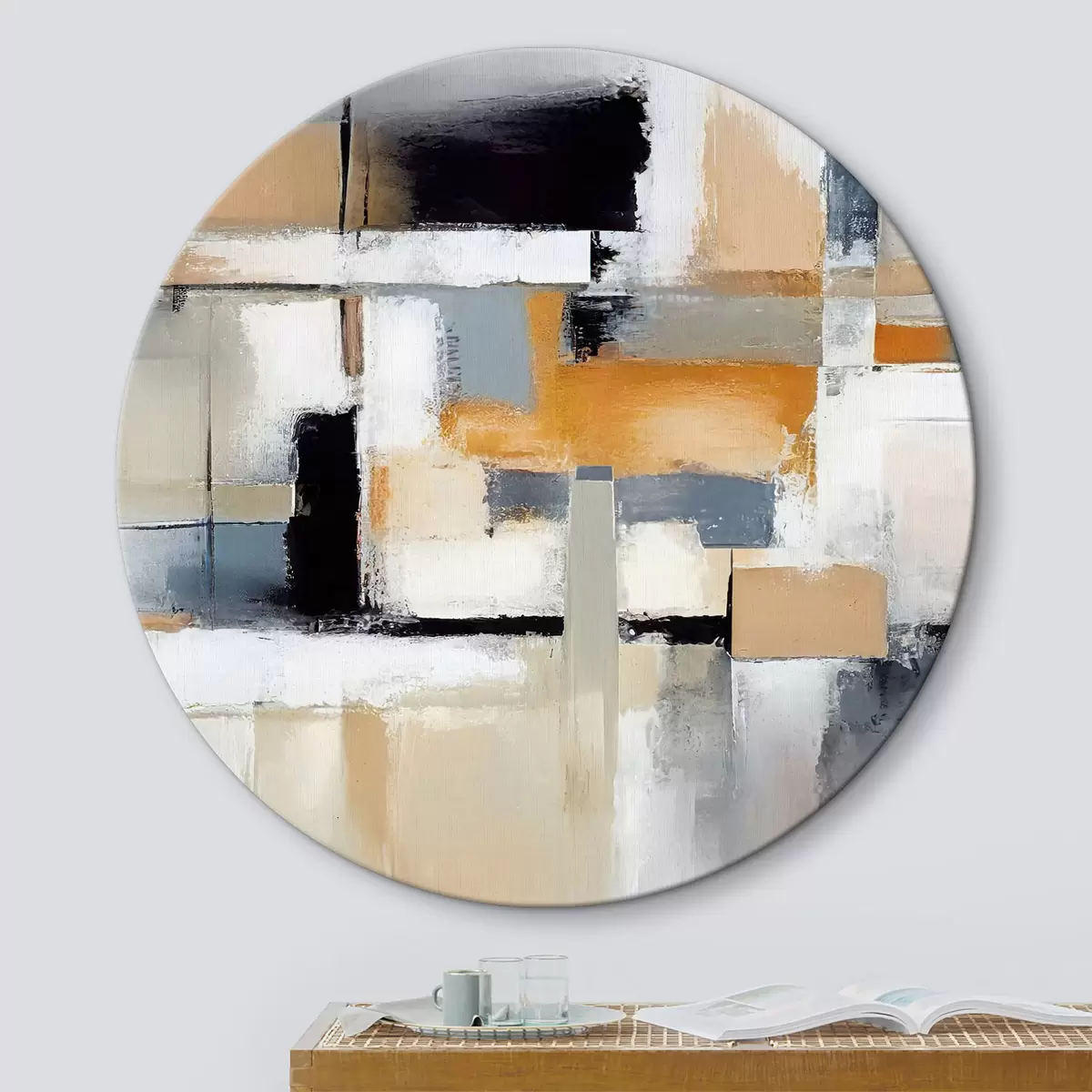 Kerek festmények Bézs-szürke absztrakció narancssárga és fehér színnel r36624