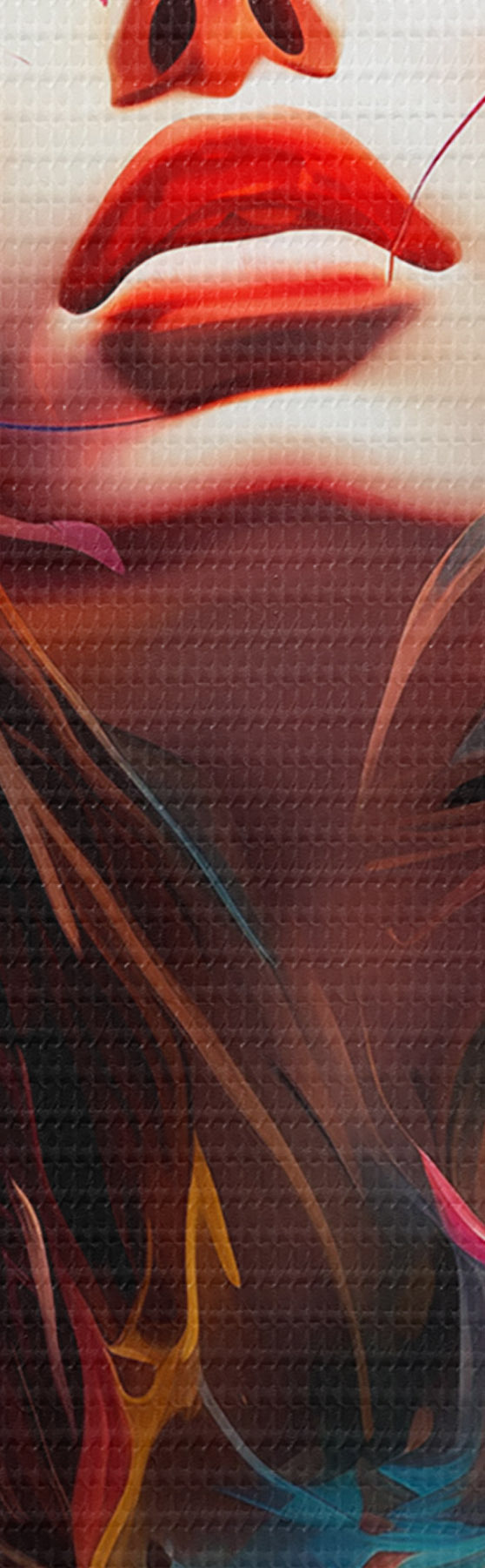 Ahhoz, hogy a vásznat a feszítőrúdra feszítsük anélkül, hogy a kép megsérülne, tükrözött képet használunk.