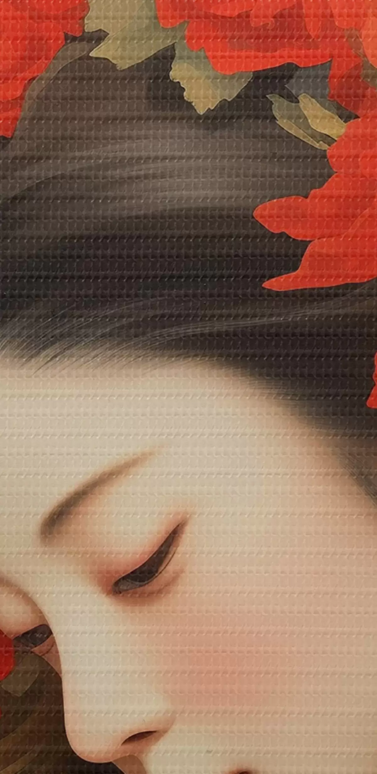 Ahhoz, hogy a vásznat a feszítőrúdra feszítsük anélkül, hogy a kép megsérülne, tükrözött képet használunk.