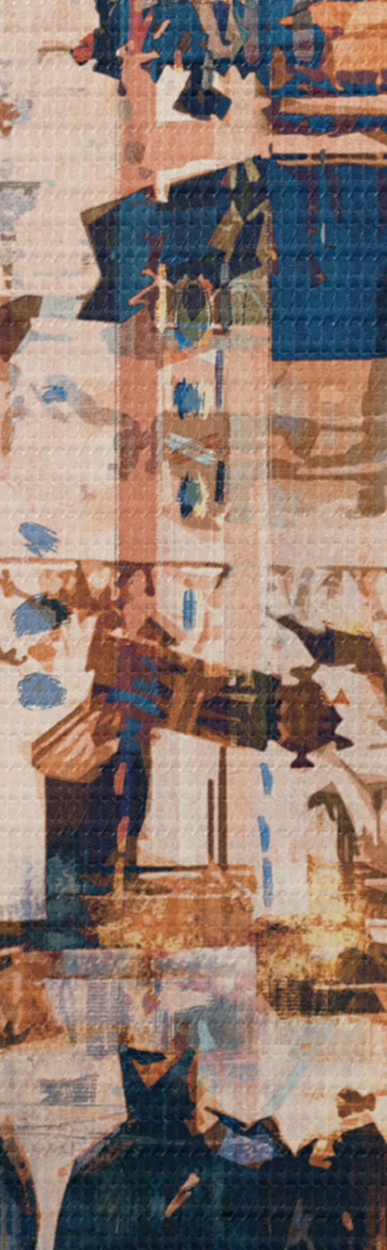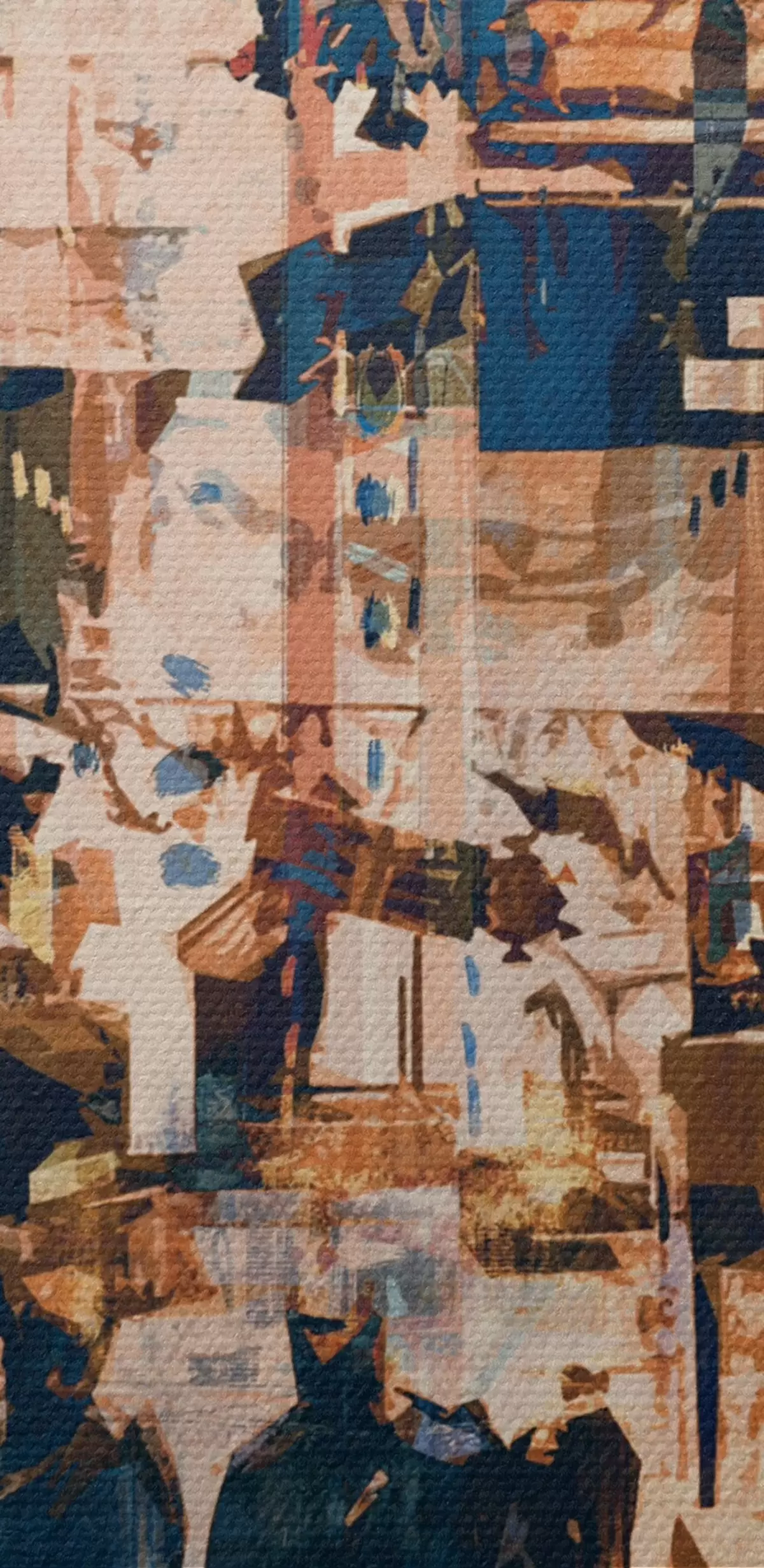Ahhoz, hogy a vásznat a feszítőrúdra feszítsük anélkül, hogy a kép megsérülne, tükrözött képet használunk.