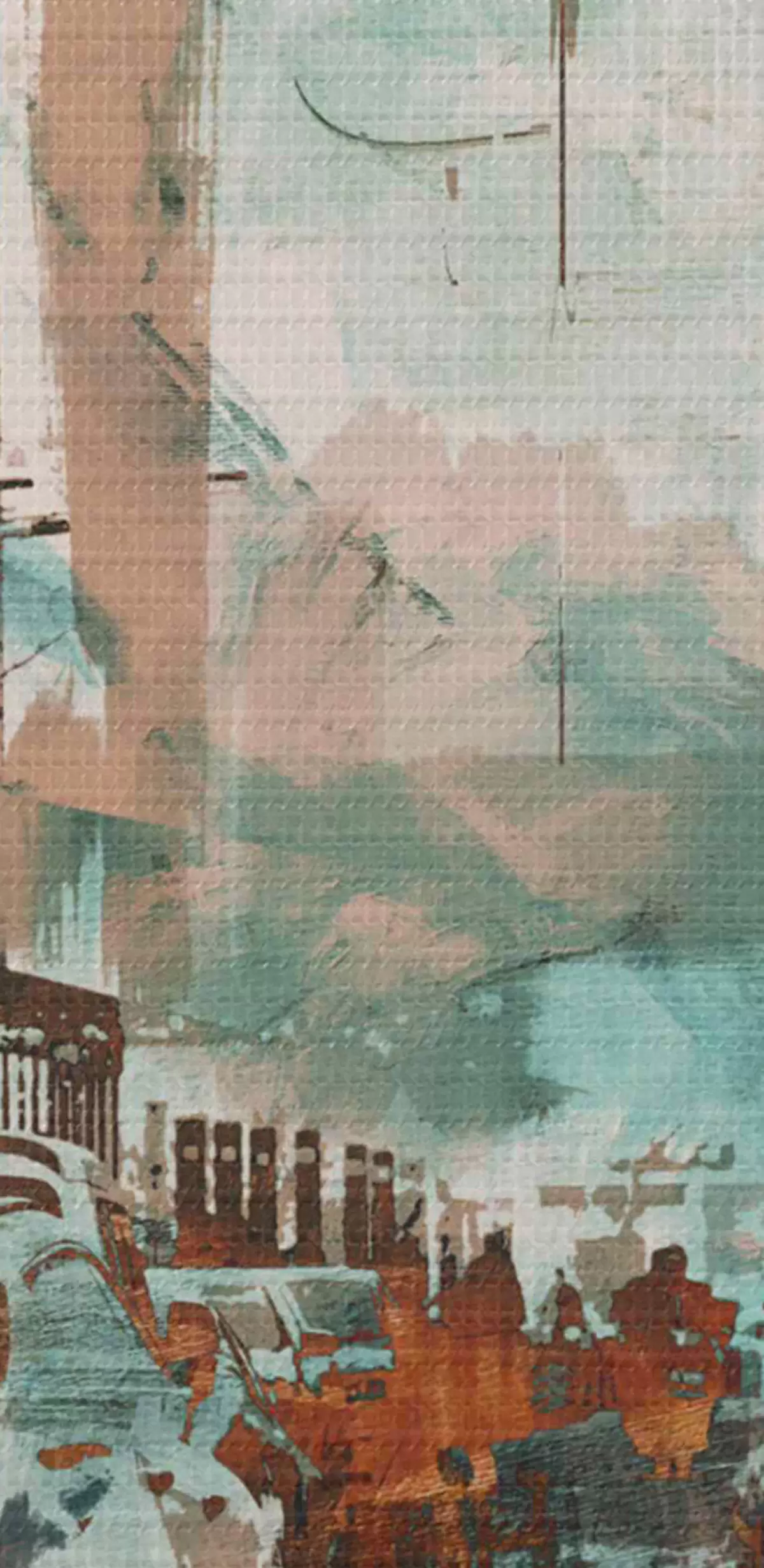 Ahhoz, hogy a vásznat a feszítőrúdra feszítsük anélkül, hogy a kép megsérülne, tükrözött képet használunk.