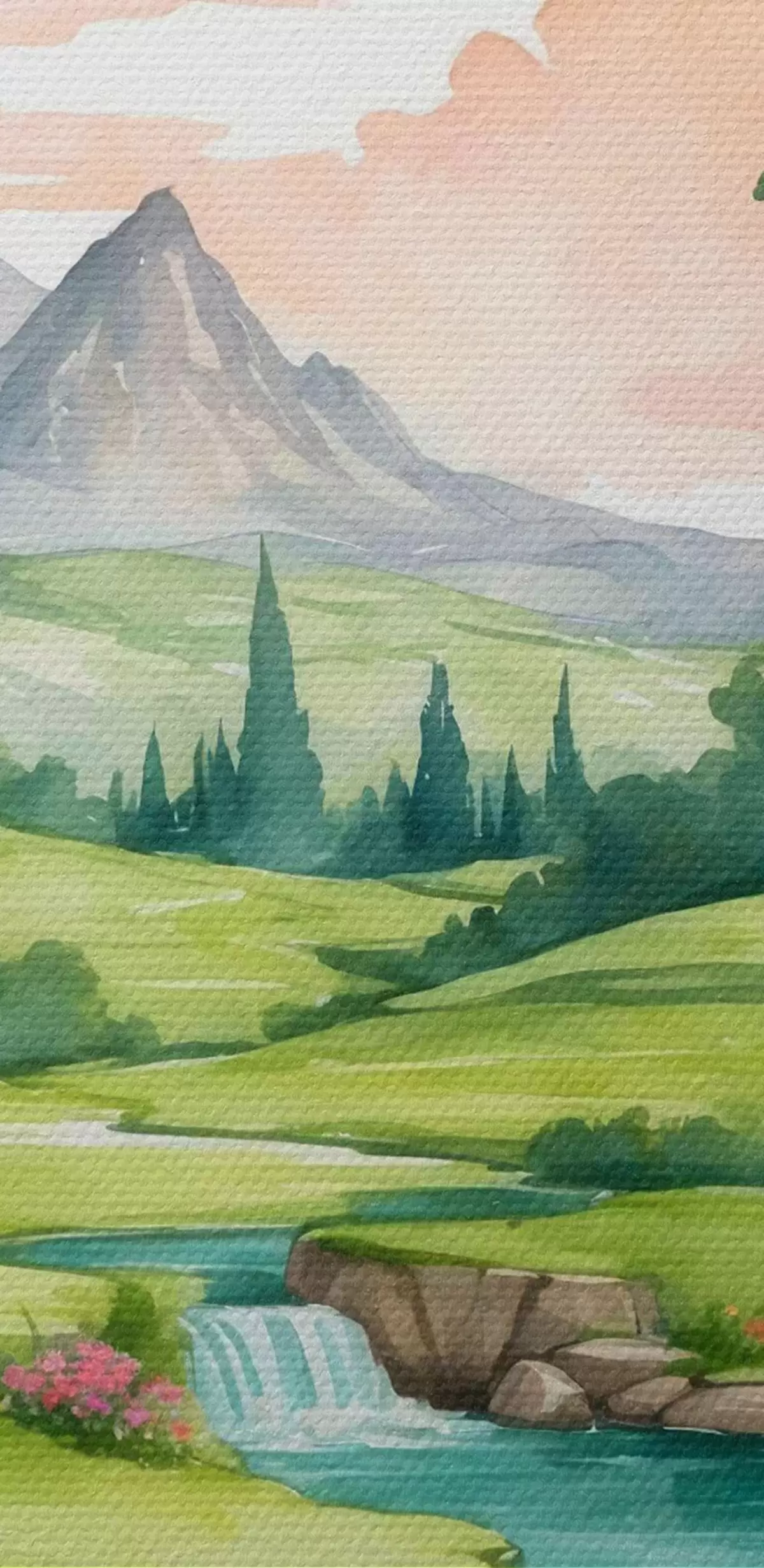 Kép Folyót és virágokat ábrázoló akvarellkép Nr r37116