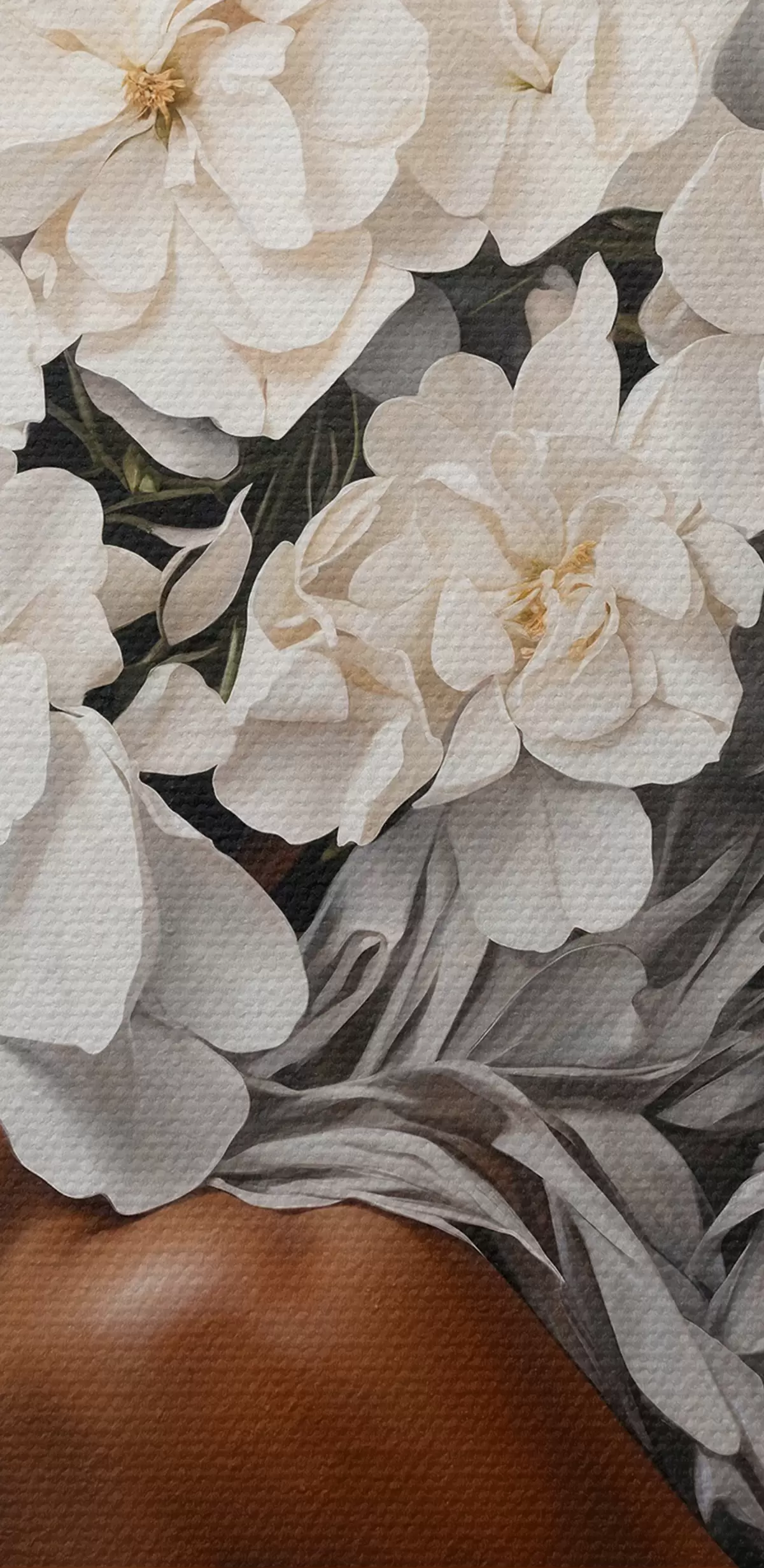 Kép Nő fehér virágokkal fekete háttéren Nr r37163