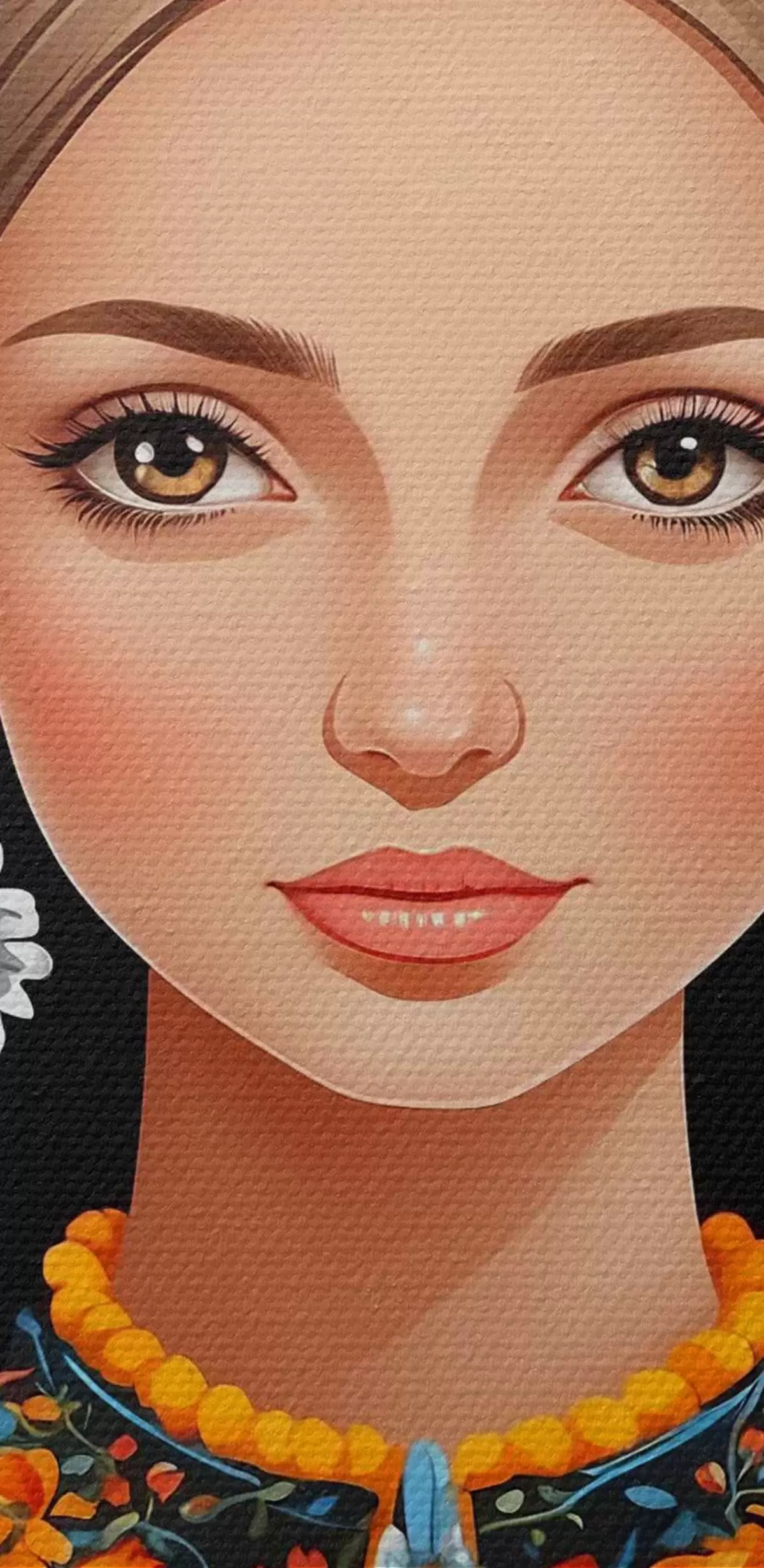 Kép Nő copfokkal és virágokkal a hajában Nr r37165