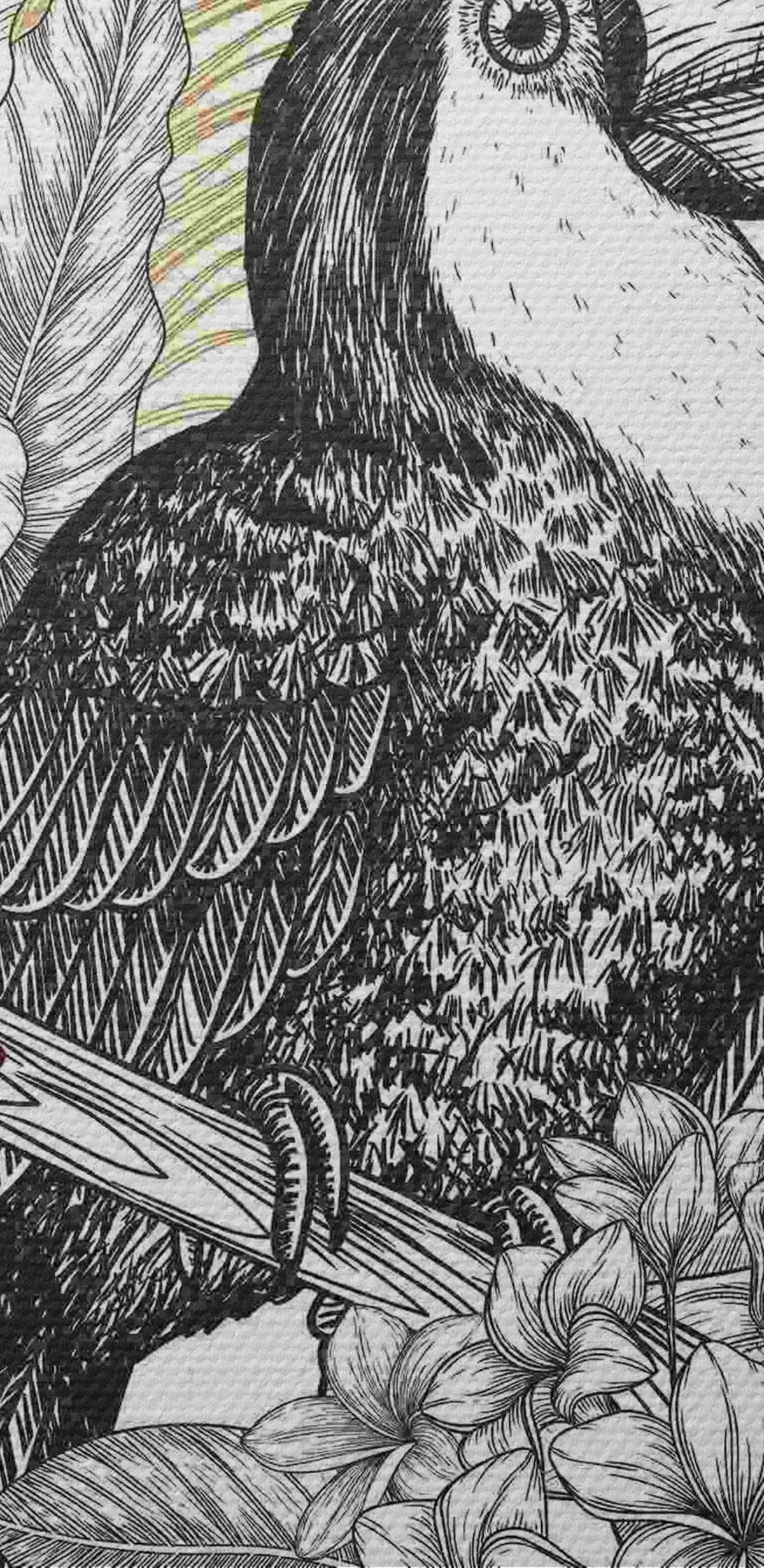 Kép Tukán levelekkel és virágokkal Nr r37303