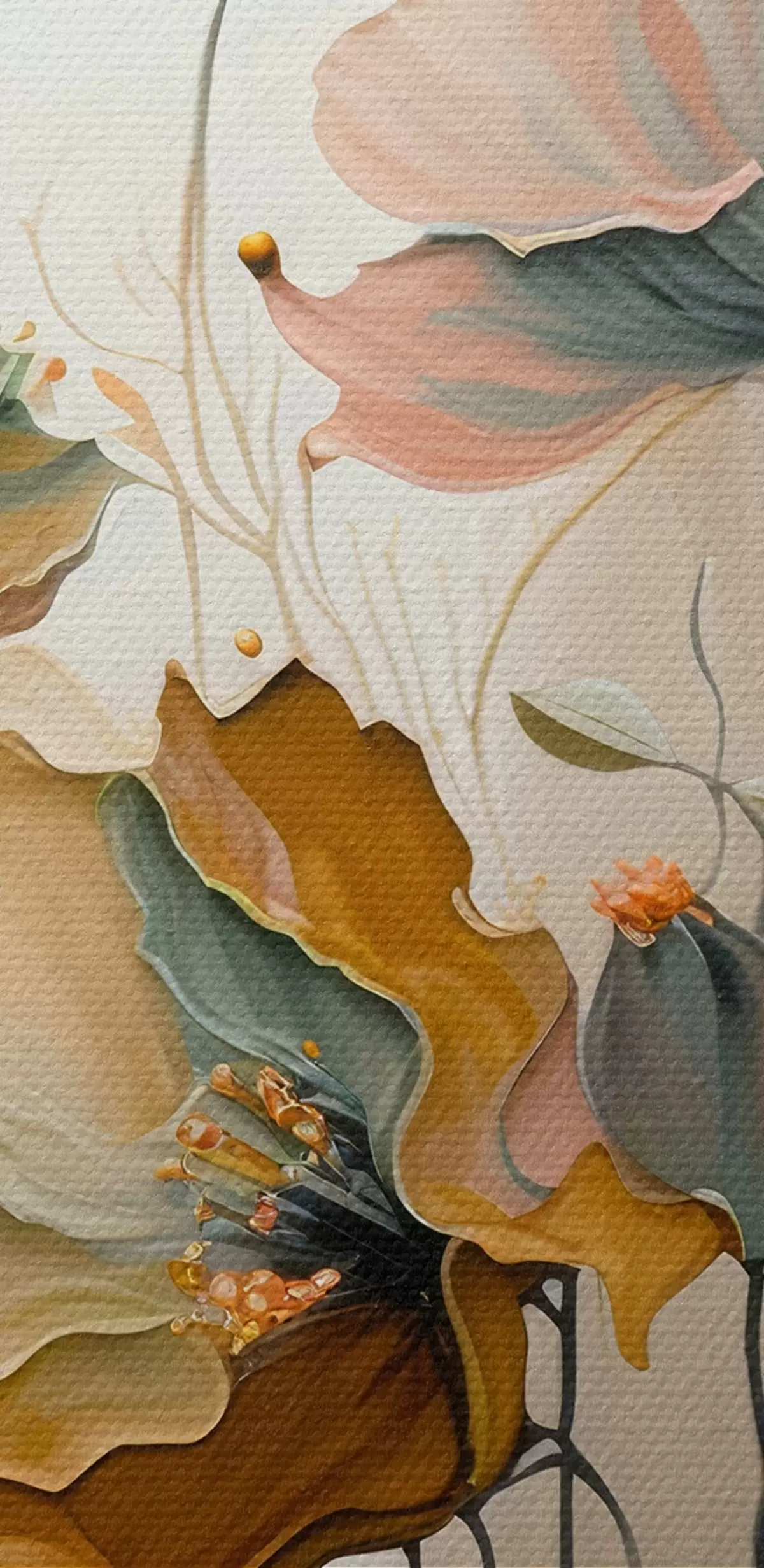 Háromféle anyagtípus rendelhető: Economic Canvas - sűrű és tartós anyag digitális nyomtatáshoz, a festővászonnal megegyező, vízálló felületű, a részletek valósághű reprodukciójával, közepes szemcsézettségű anyag. Premium Canvas - a textúra hasonlít a festővászonra (egymásba fonódó apró szálak). Puha, részletgazdag képreprodukció matt felületen. Eco-Premium - kiváló minőségű 100% pamutszövet. A természetes pamutszálaknak köszönhetően az anyag tartós és kopásálló. Kiváló színvisszaadás és részletesség.