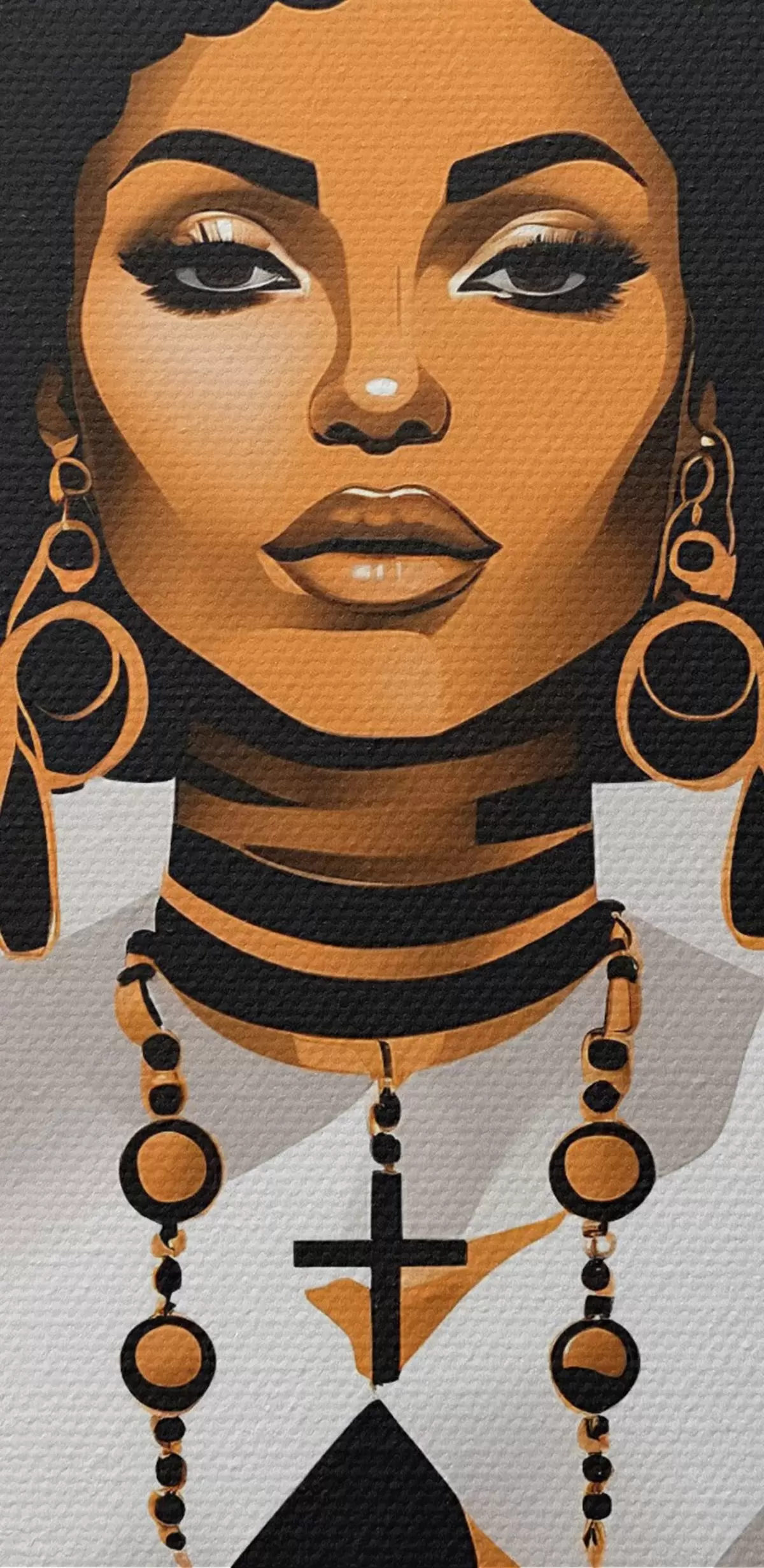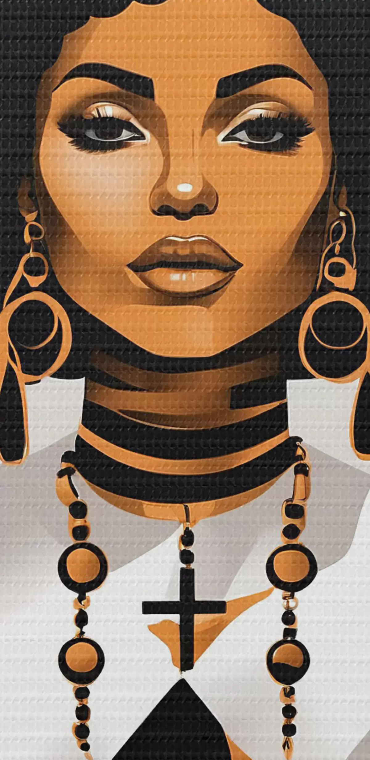 Kép Egy nagy afro nő fehér ingben és fülbevalóban Nr r37793
