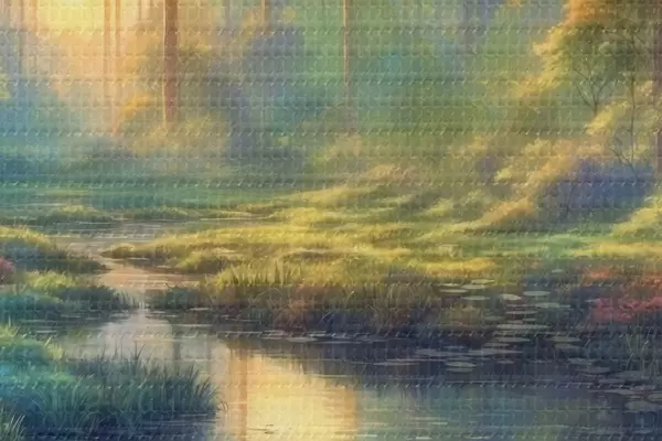 Ahhoz, hogy a vásznat a feszítőrúdra feszítsük anélkül, hogy a kép megsérülne, tükrözött képet használunk.