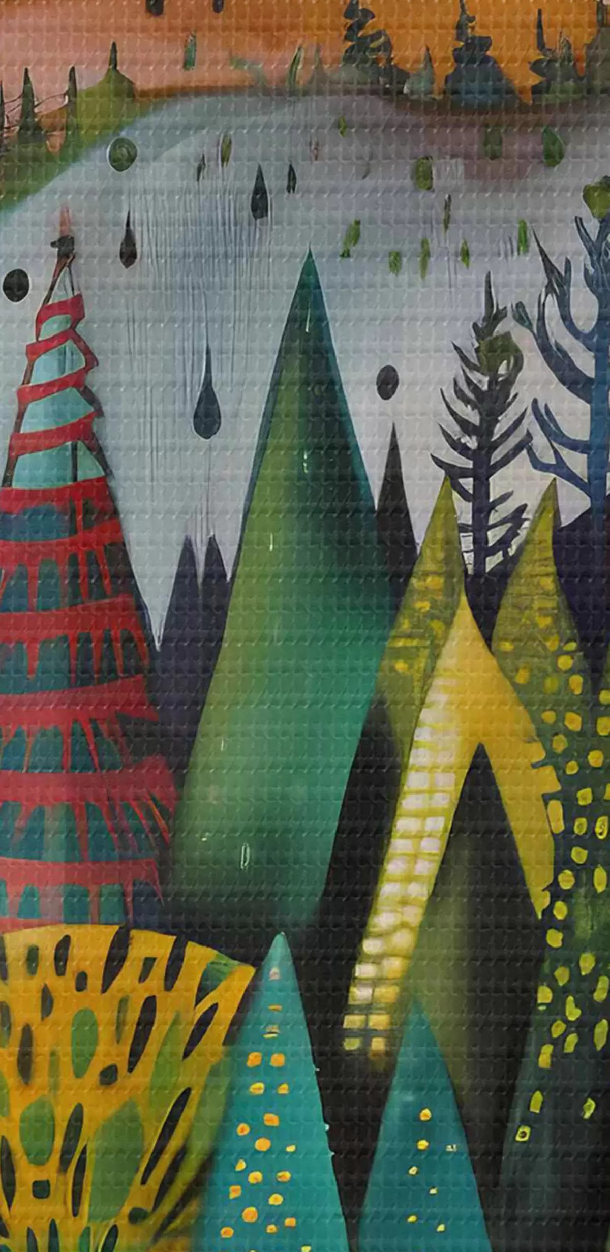 Ahhoz, hogy a vásznat a feszítőrúdra feszítsük anélkül, hogy a kép megsérülne, tükrözött képet használunk.