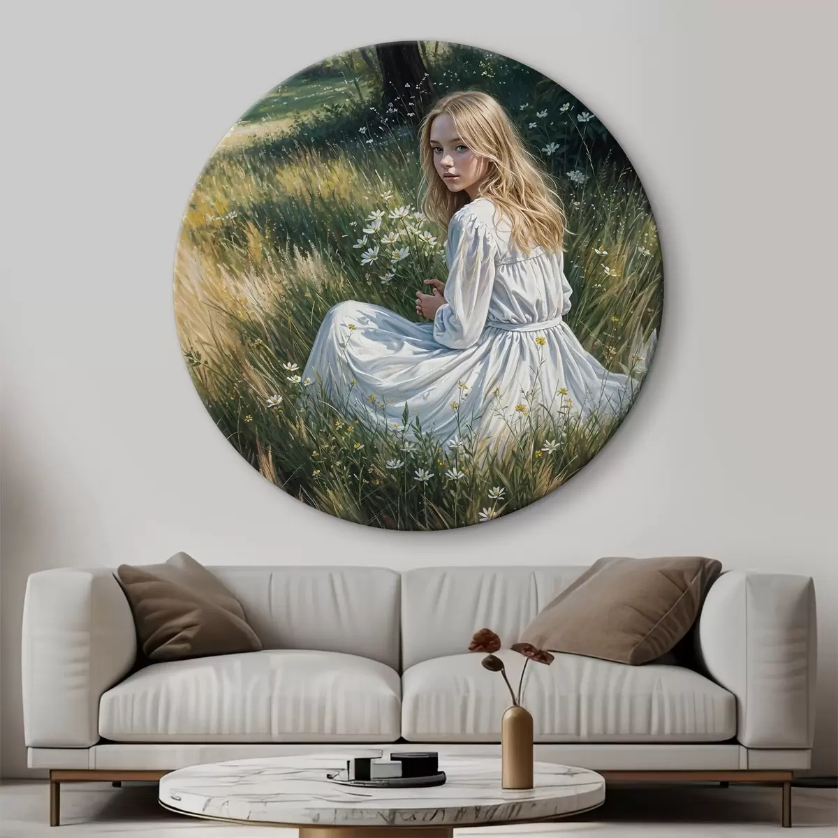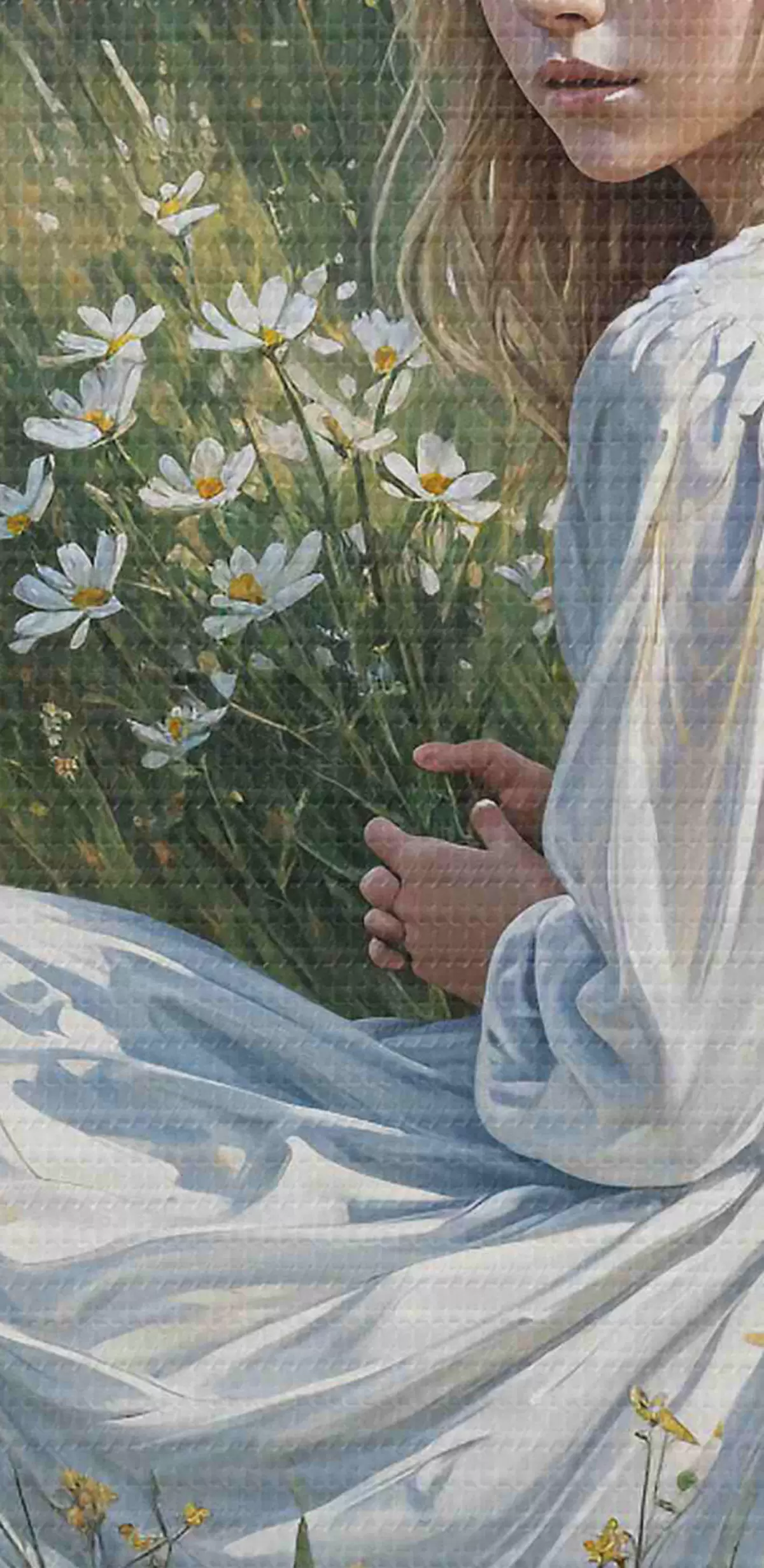 Kép Fehér ruhás lány ül egy virágos mezőn Nr r38196