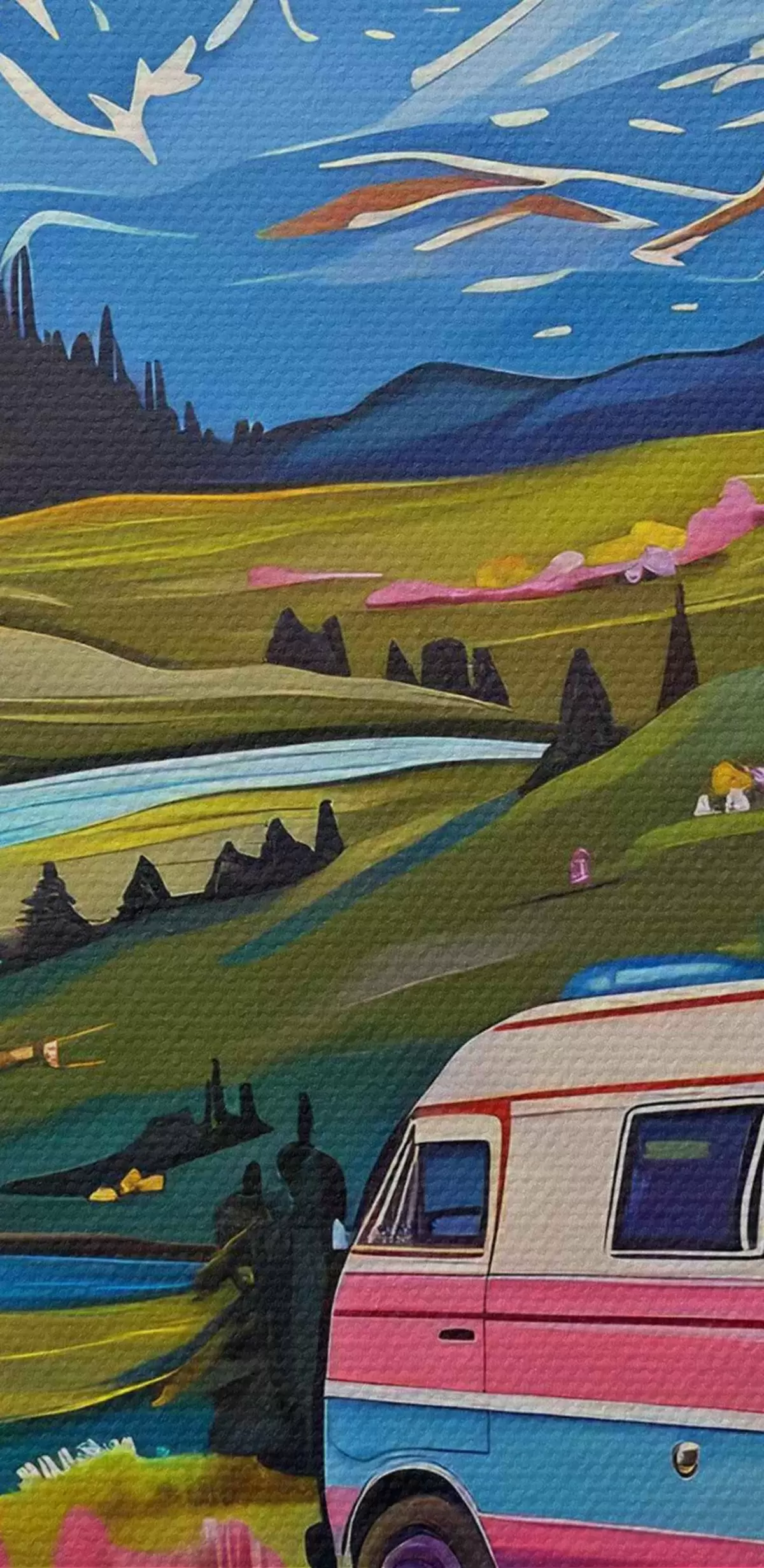 Kép Egy furgon egy völgyben, virágokkal és hegyekkel Nr r38259