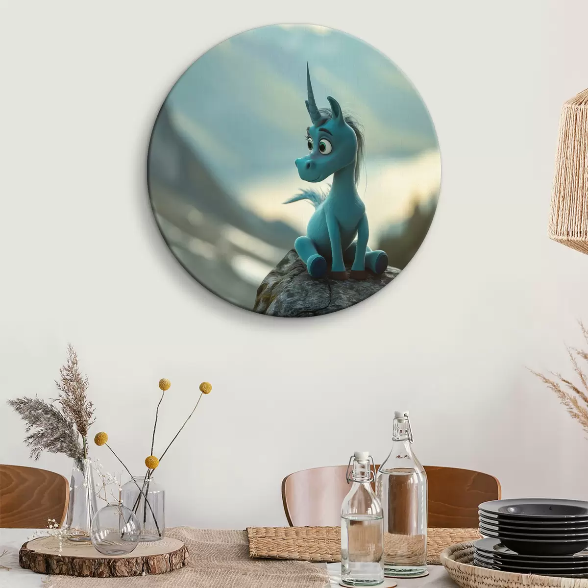 Kép Egy kék egyszarvút ábrázoló rajz, amely egy sziklán ül Nr r38274