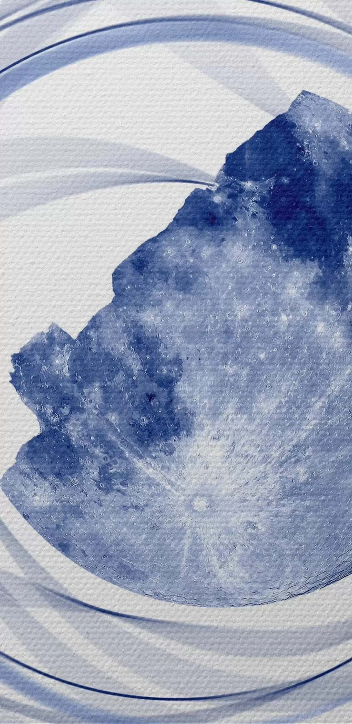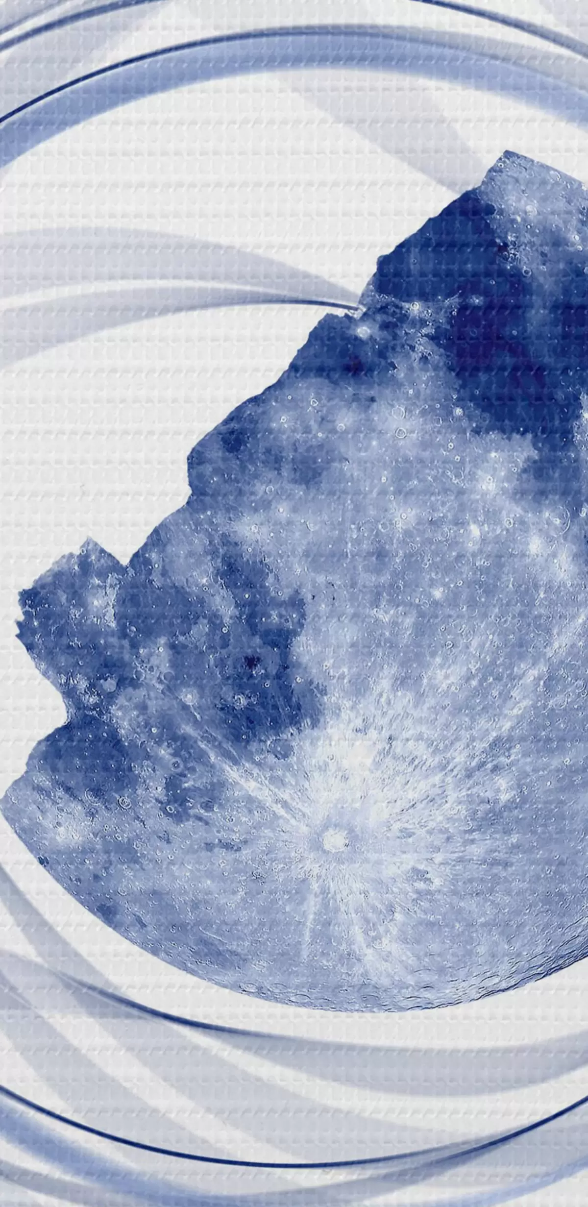 Kép Hold keringése, félhold, minimalizmus, tér, idő, ívelt elmosódott vonalak, csillagok, galaxis, kék szín Nr r38280