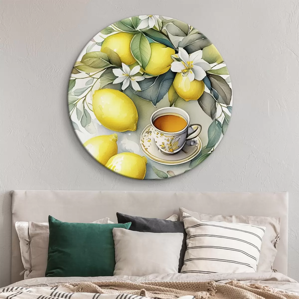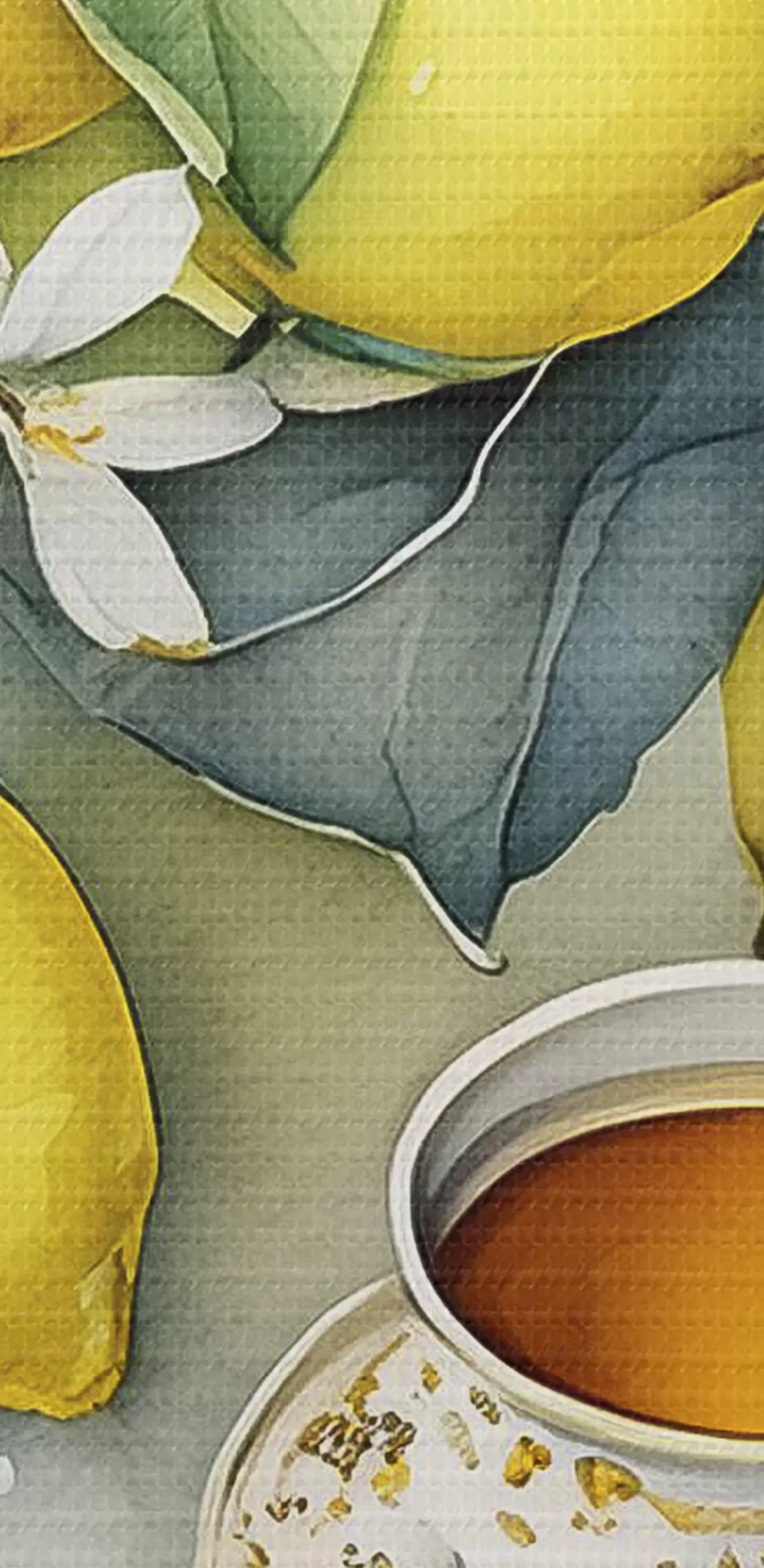 Kép Citrom és virágok, akvarell, reggeli, csésze tea, bohém stílusban Nr r38403